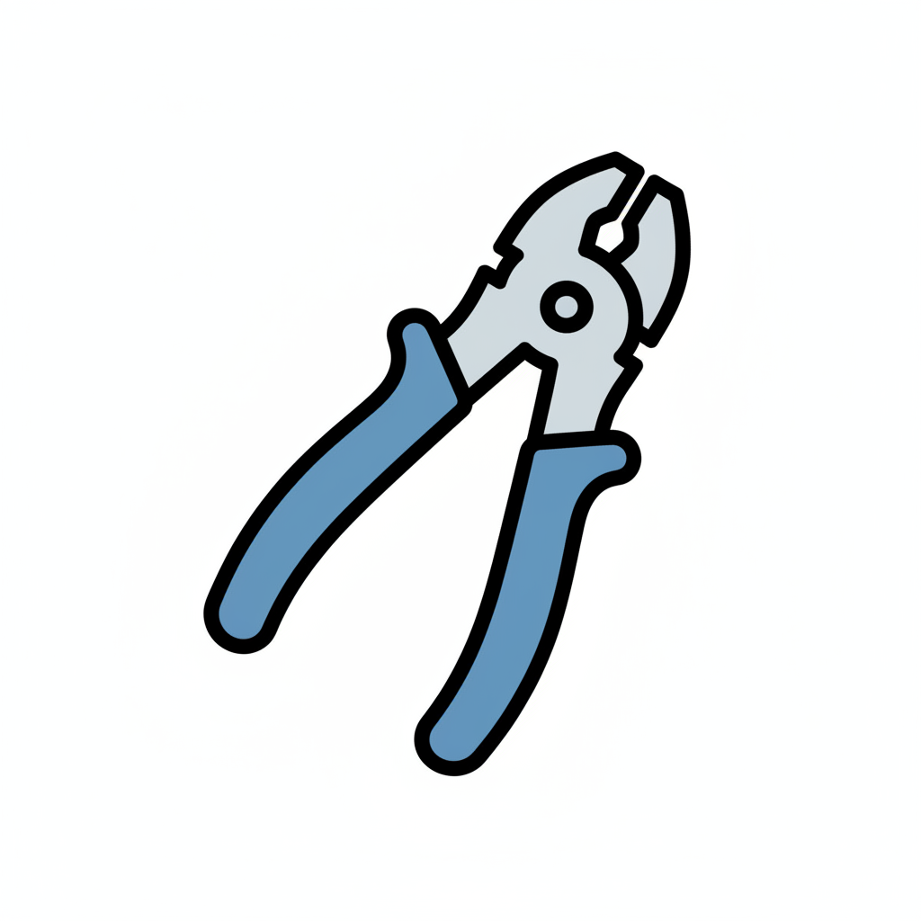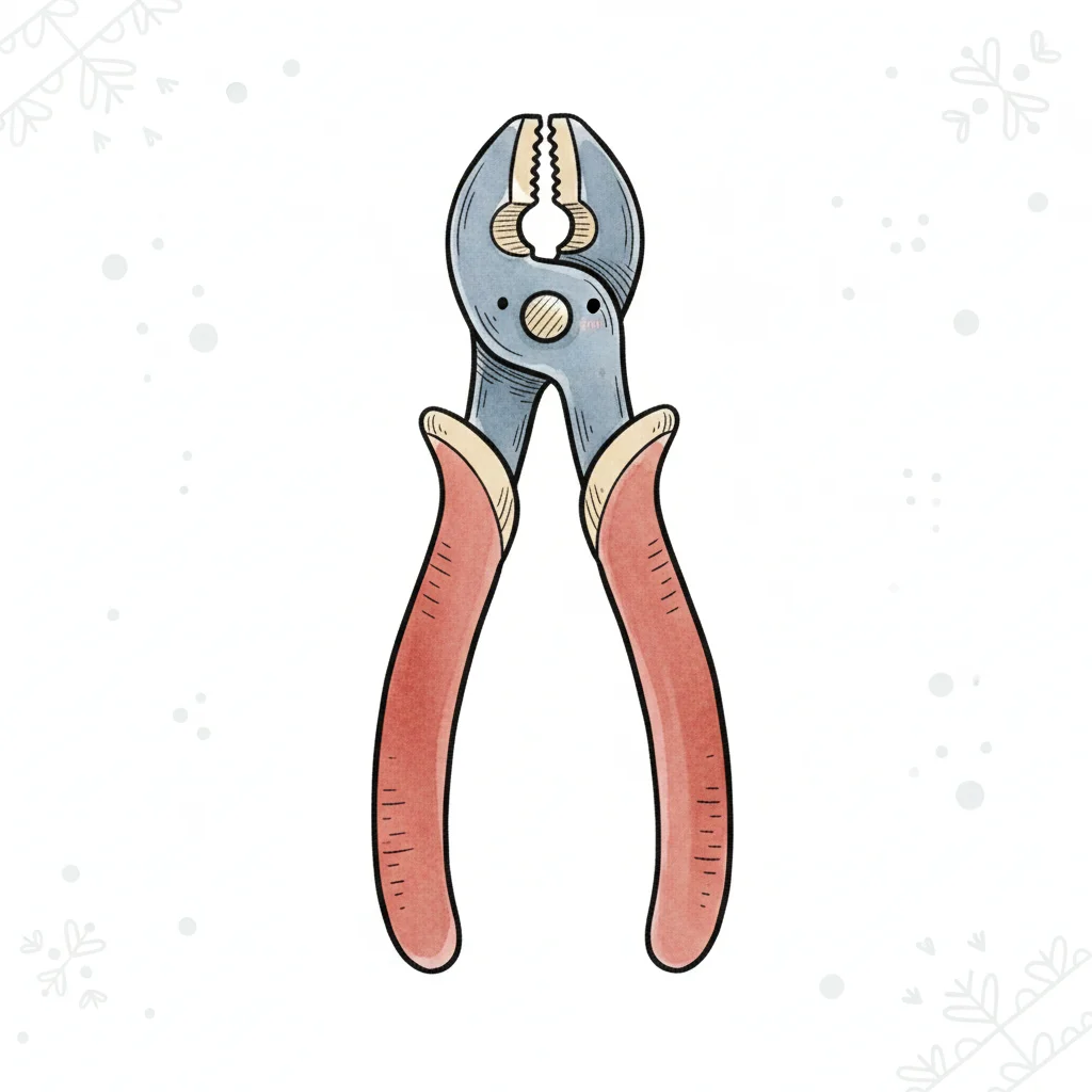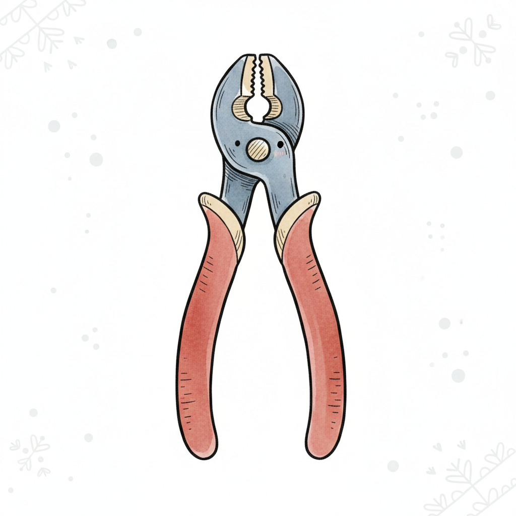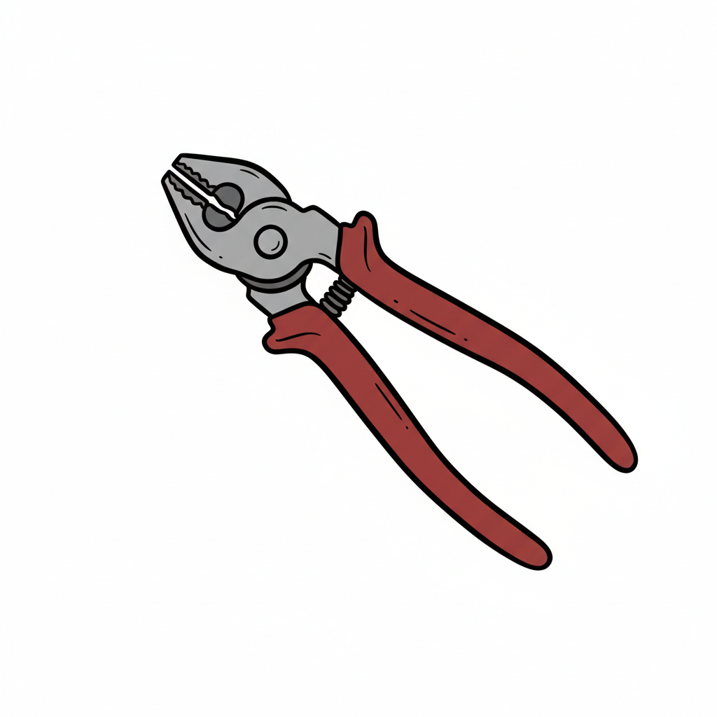 Cartoon-Illustration einer Zange mit roten Griffen auf weißem Hintergrund.