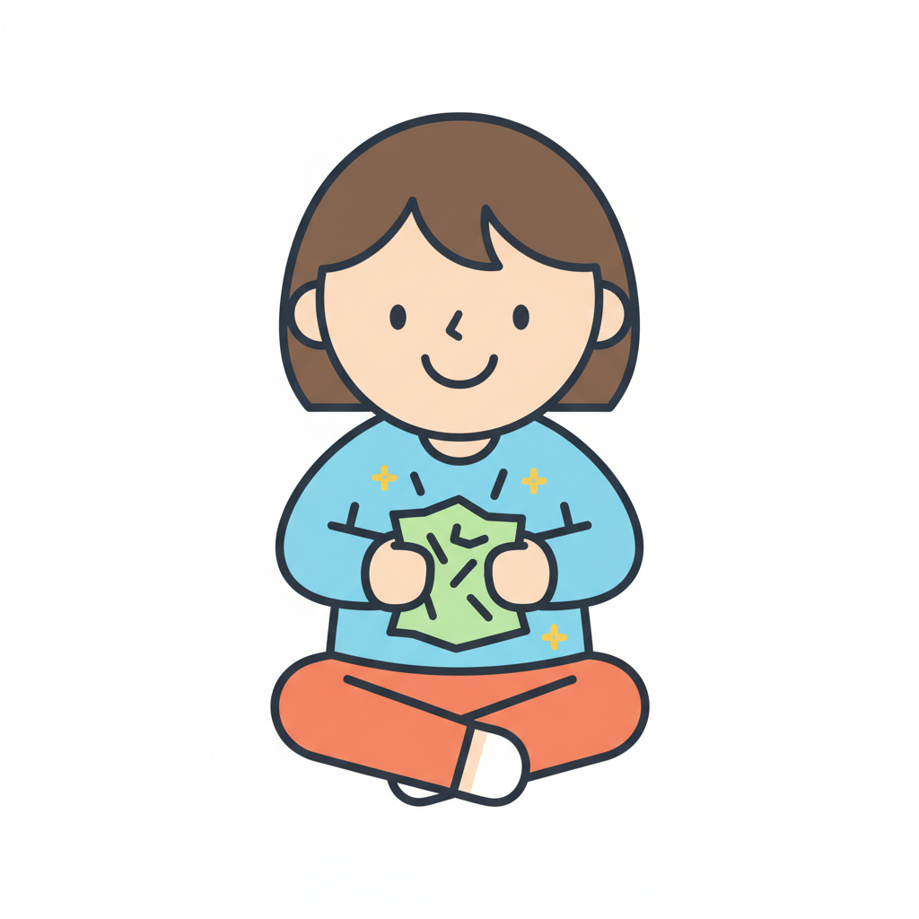 Niedliche, kindgerecht illustrierte Szene mit einem Kind oder einer Person als Hauptfigur, vor rein weißem Hintergrund, im frech-nordischen Aquarell-Skizzenstil. Klare, leicht wackelige Tuschekonturen, sichtbare Pinsel- und Strichtextur, dezente Schraffuren, weiche handgemalte Farbflächen in gedeckten Farben. Einfache, runde Formen. Keine harten Schatten, sondern sanfte, transparente Aquarellschichten. Leicht raue, handgezeichnete Linien statt glatter Vektorkanten. Subtile, vereinzelte Kritzelpunkte oder kleine Details im Hintergrund (wie Pünktchen oder feine Striche), aber keine echte Umgebung oder Landschaft. Die Figur ist mittig zentriert. Insgesamt charmant, humorvoll, warm und handgemacht wirkend. WICHTIG: Das Bild darf ABSOLUT KEINEN TEXT, KEINE BUCHSTABEN und KEINE ZAHLEN enthalten.