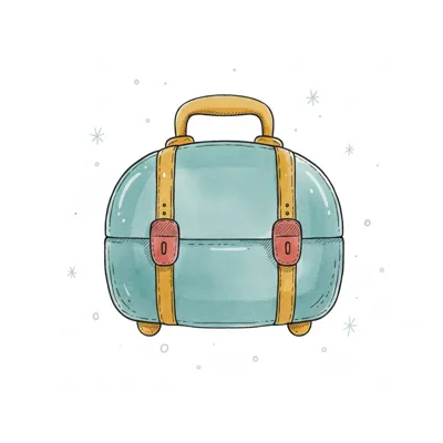 Niedlicher, runder, hellblauer Koffer mit gelben Riemen und Griff im Aquarellstil.