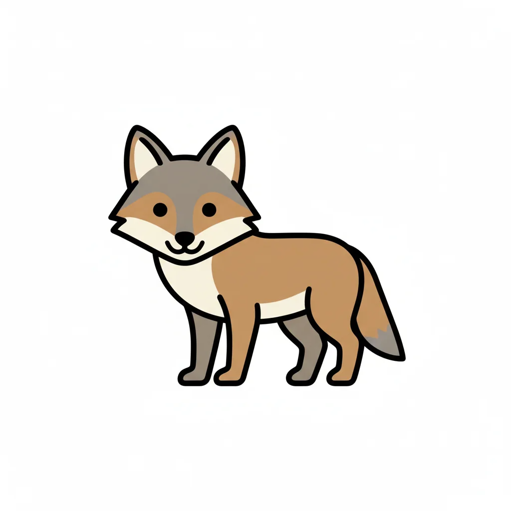 Ein niedlicher, stilisierter Fuchs mit braunem und grauem Fell.