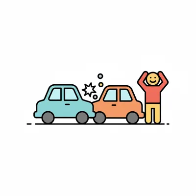 Icon: Zwei Autos sind in einen Auffahrunfall verwickelt, daneben steht eine Person mit erhobenen Händen.