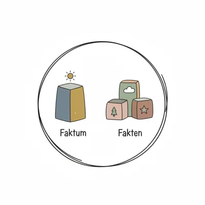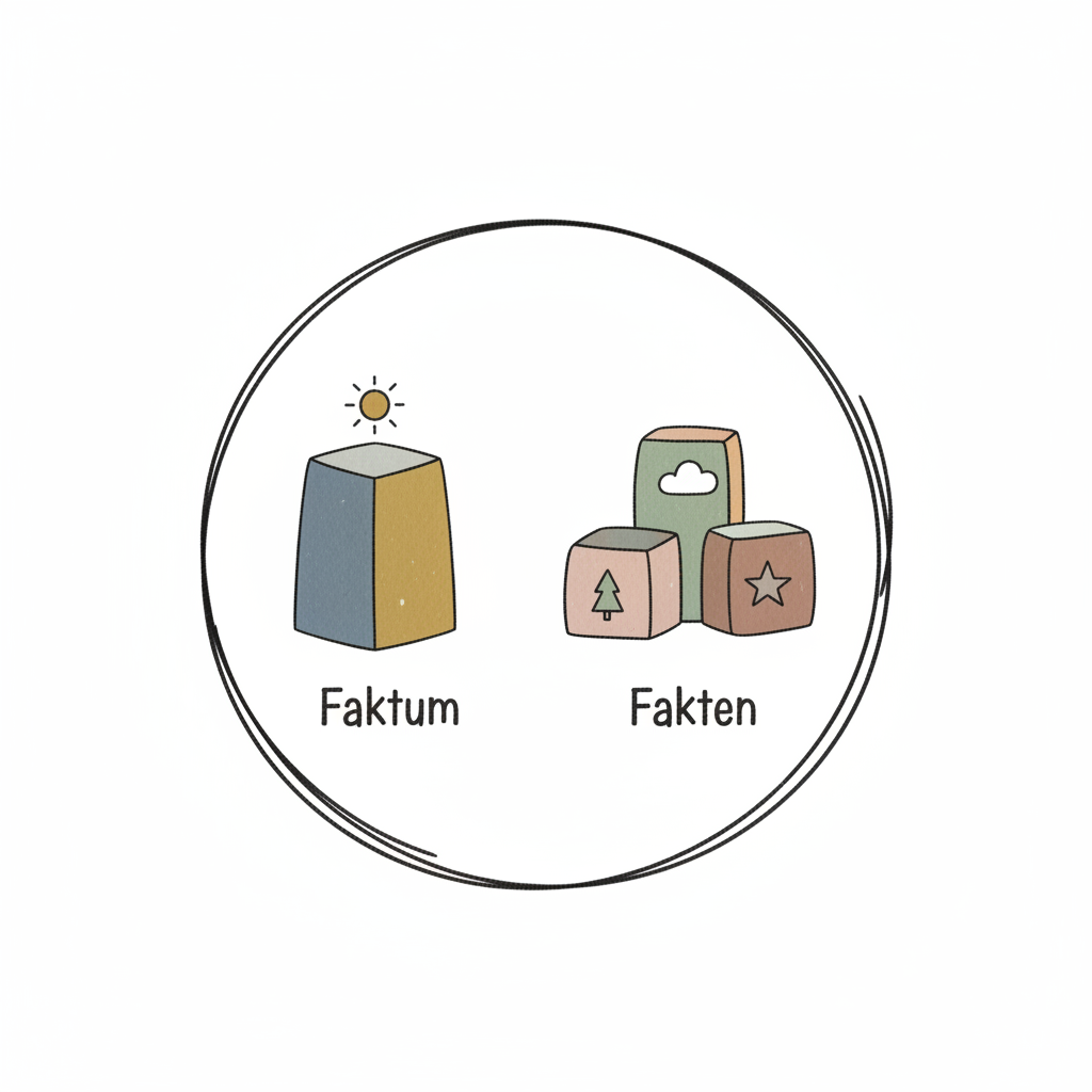 Illustration: Ein Block als 'Faktum' und drei Blöcke als 'Fakten' in einem Kreis.