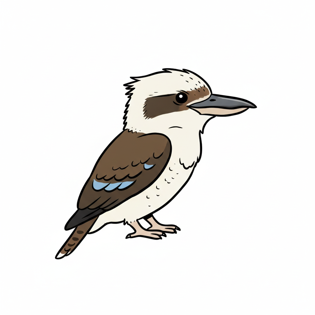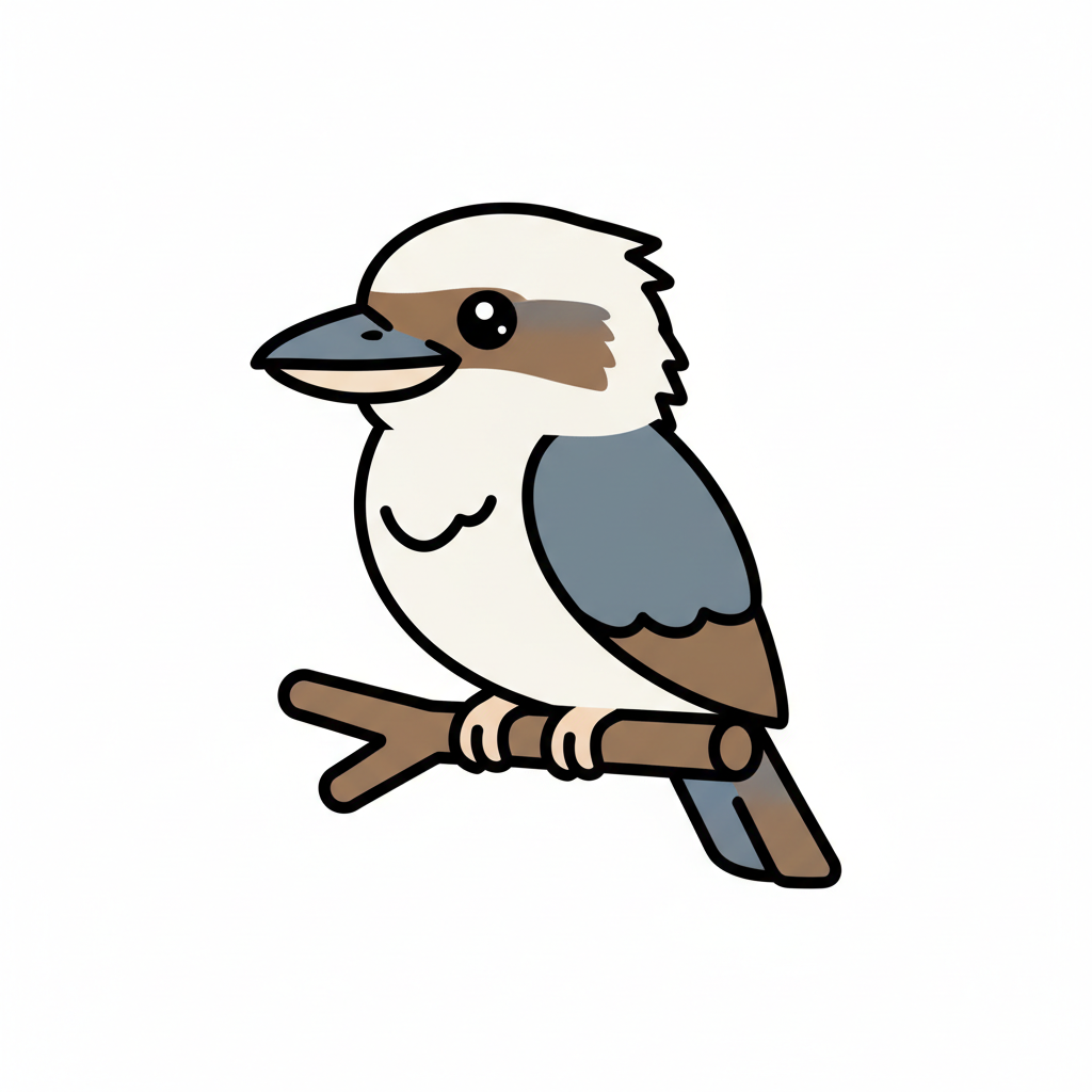 Ein illustriertes Bild eines Kookaburras in Schwarz-Weiß.