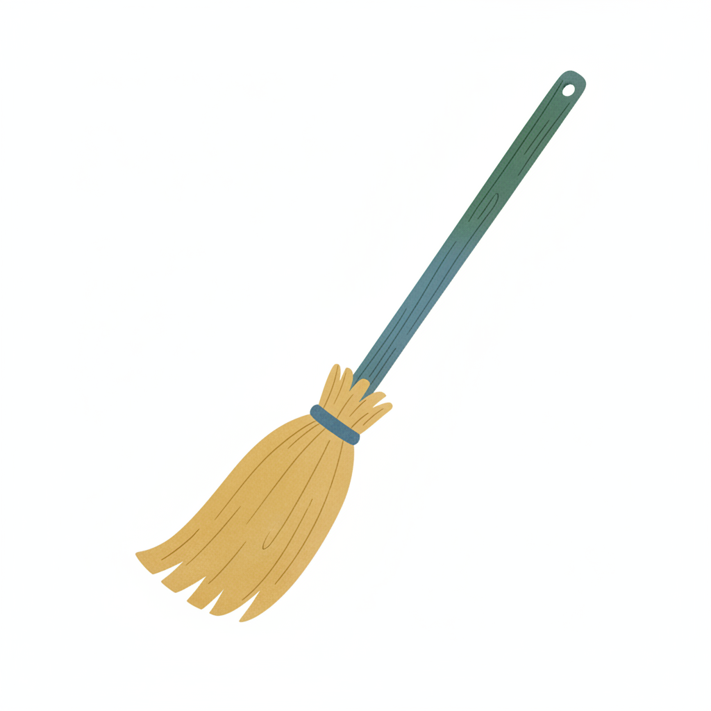 Eine einfache, stilisierte Besenzeichnung mit grünem Griff und goldenem Borstenkopf.