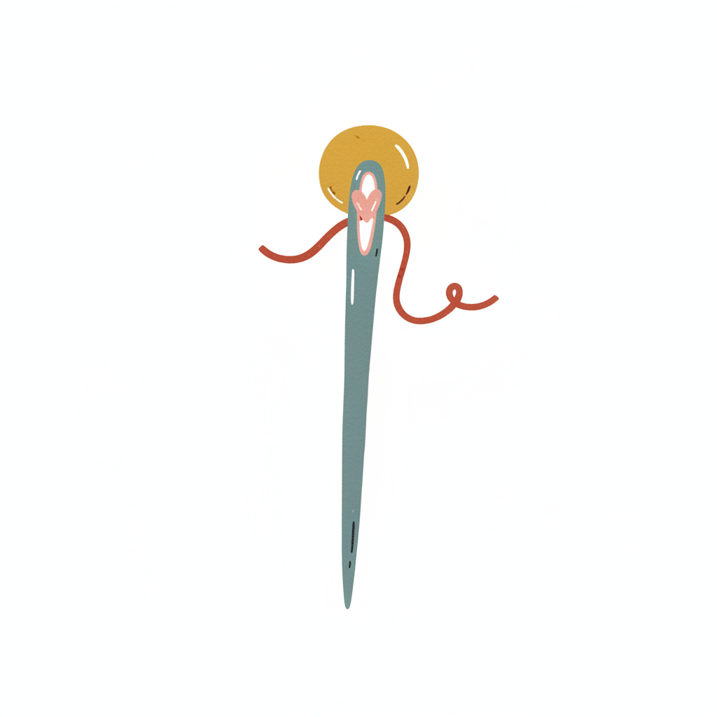 Eine Nadel mit Faden und einem knopfartigen Kopf.
