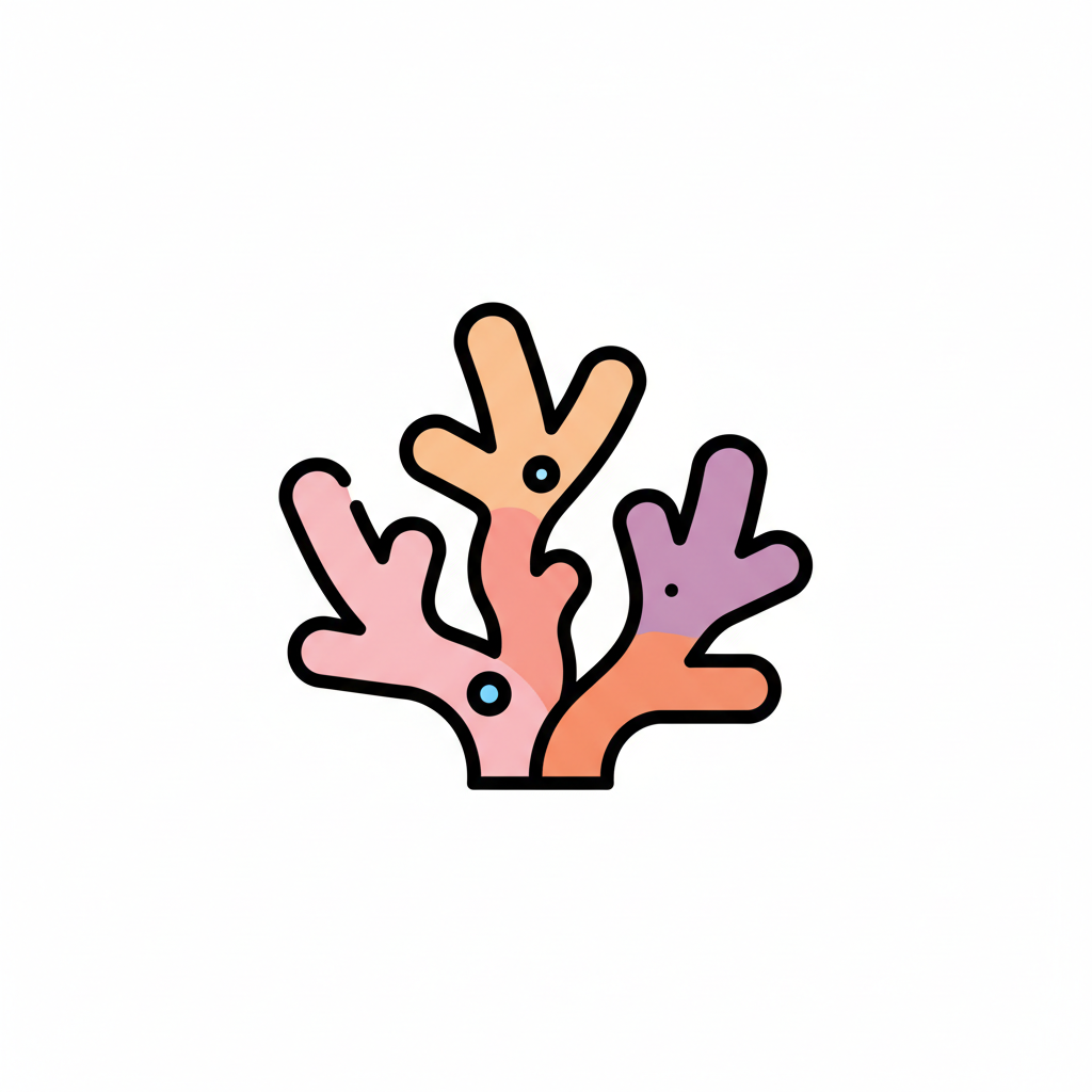 Buntes, stilisiertes Korallenmotiv in sanften Farben.