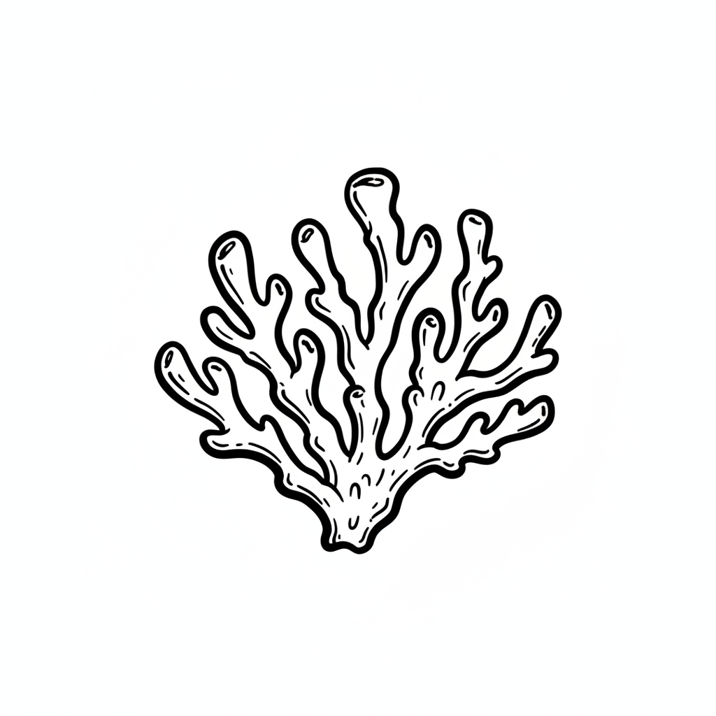 Stilisierte Zeichnung eines Korallenwerks in Schwarz-Weiß.