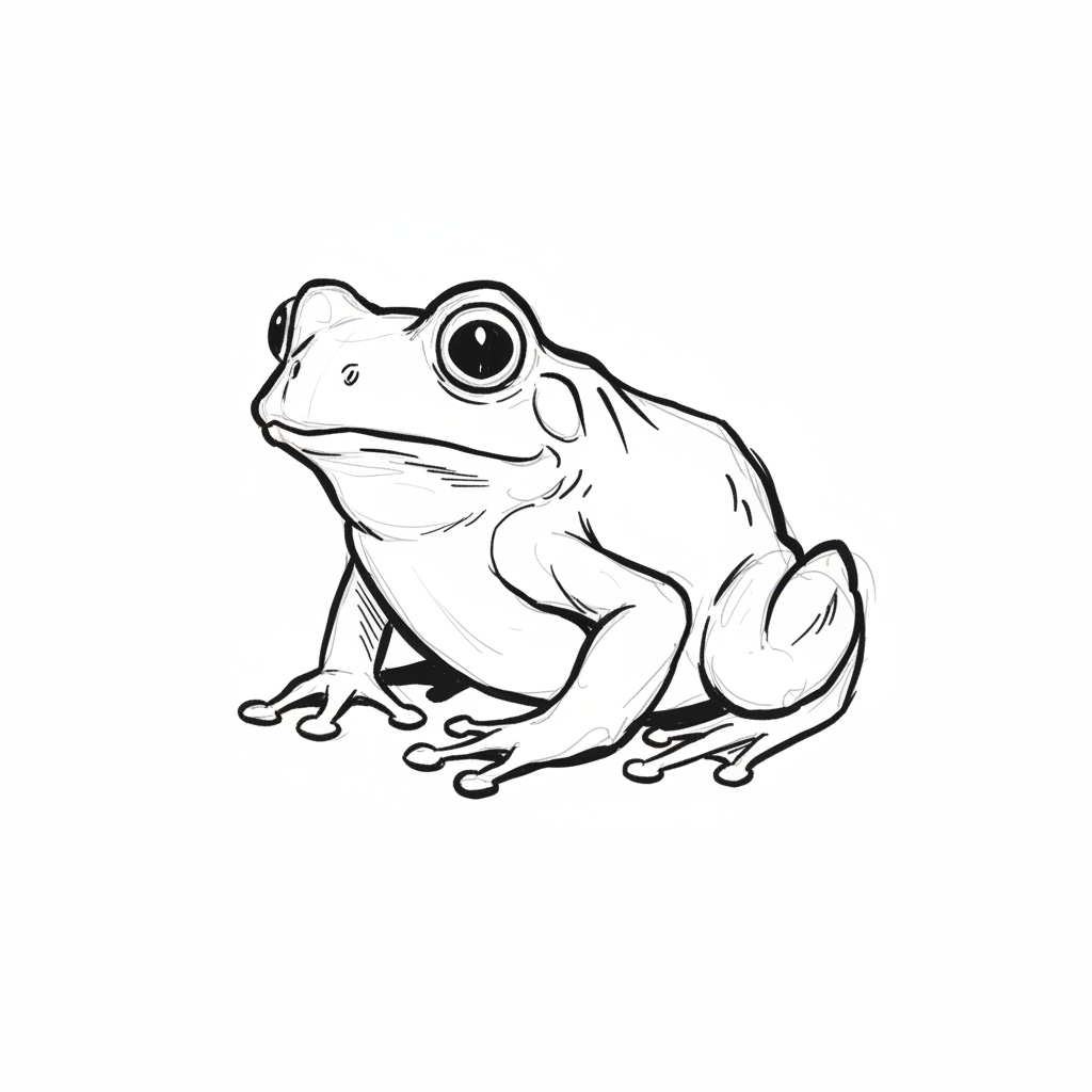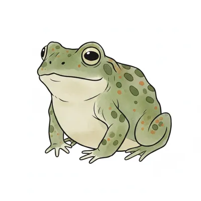 Eine gezeichnete Kröte mit großen Augen und detaillierter Hauttextur.