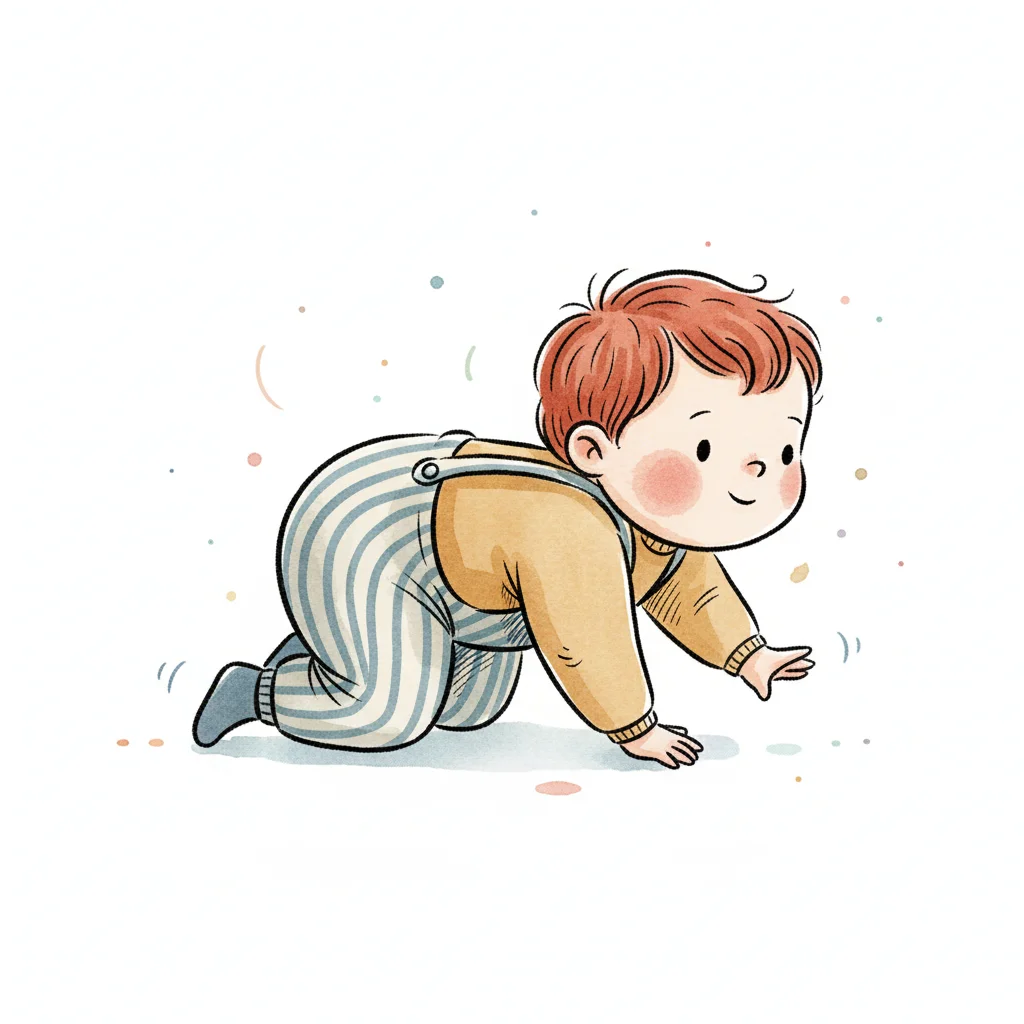 Ein kleiner Junge krabbelt fröhlich auf dem Boden.