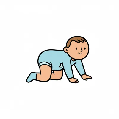 Ein fröhliches Baby, das auf den Knien krabbelt und lächelt.