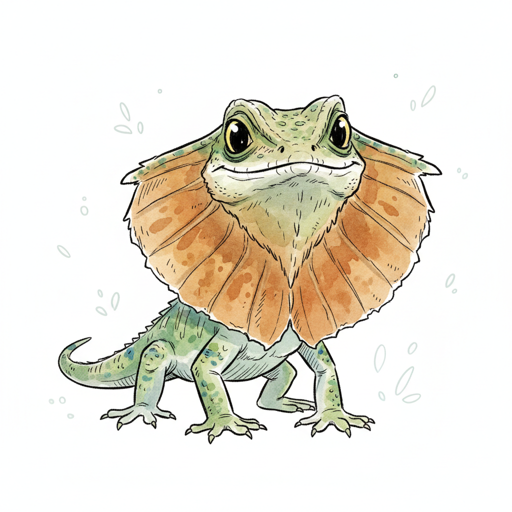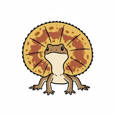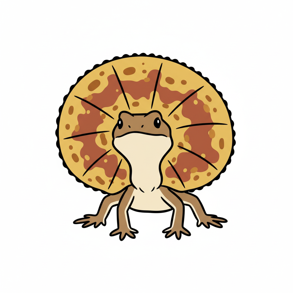 Ein illustriertes Echsenbild mit einem auffälligen Halskragen.