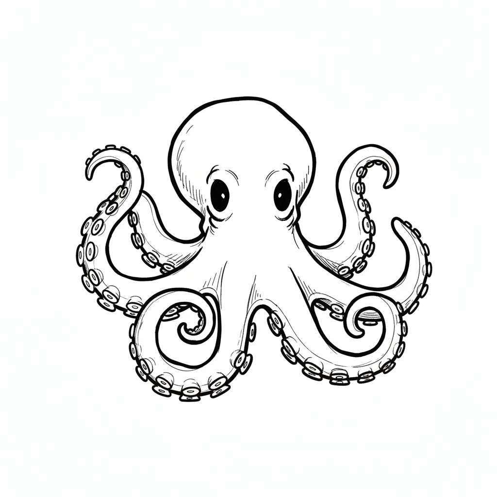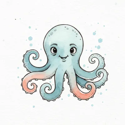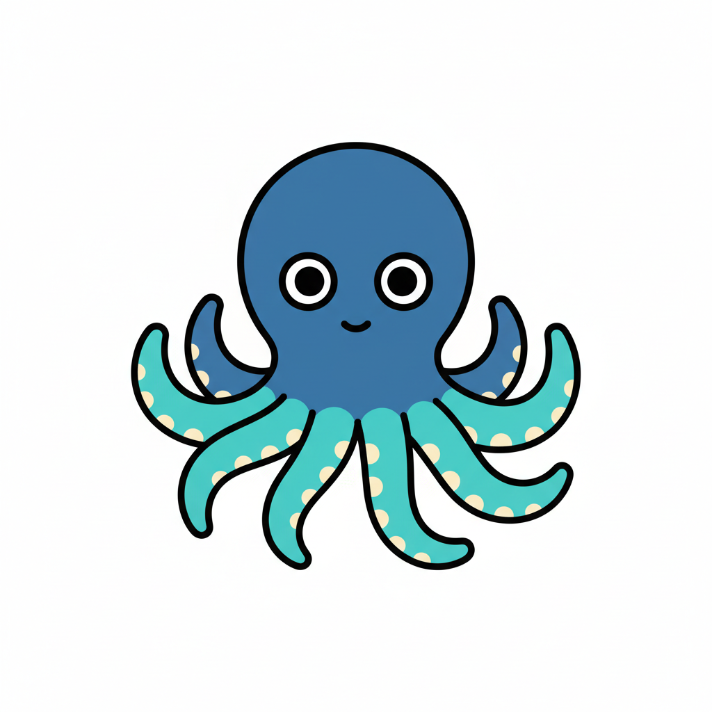 Ein niedlicher, cartoonartiger Oktopus mit großen Augen und vielen Tentakeln.