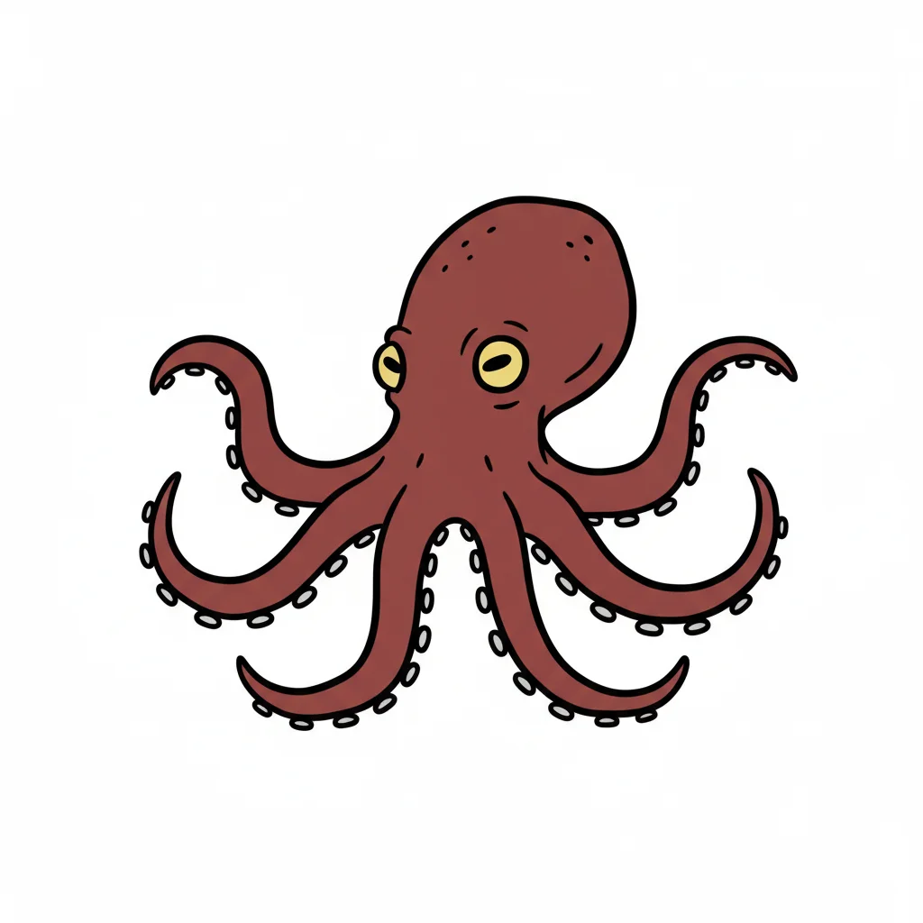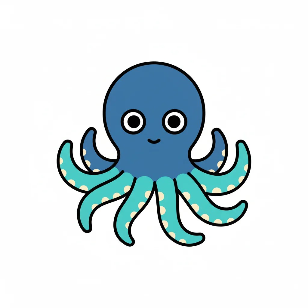 Ein stilisierter, cartoonartiger Oktopus mit acht Tentakeln.