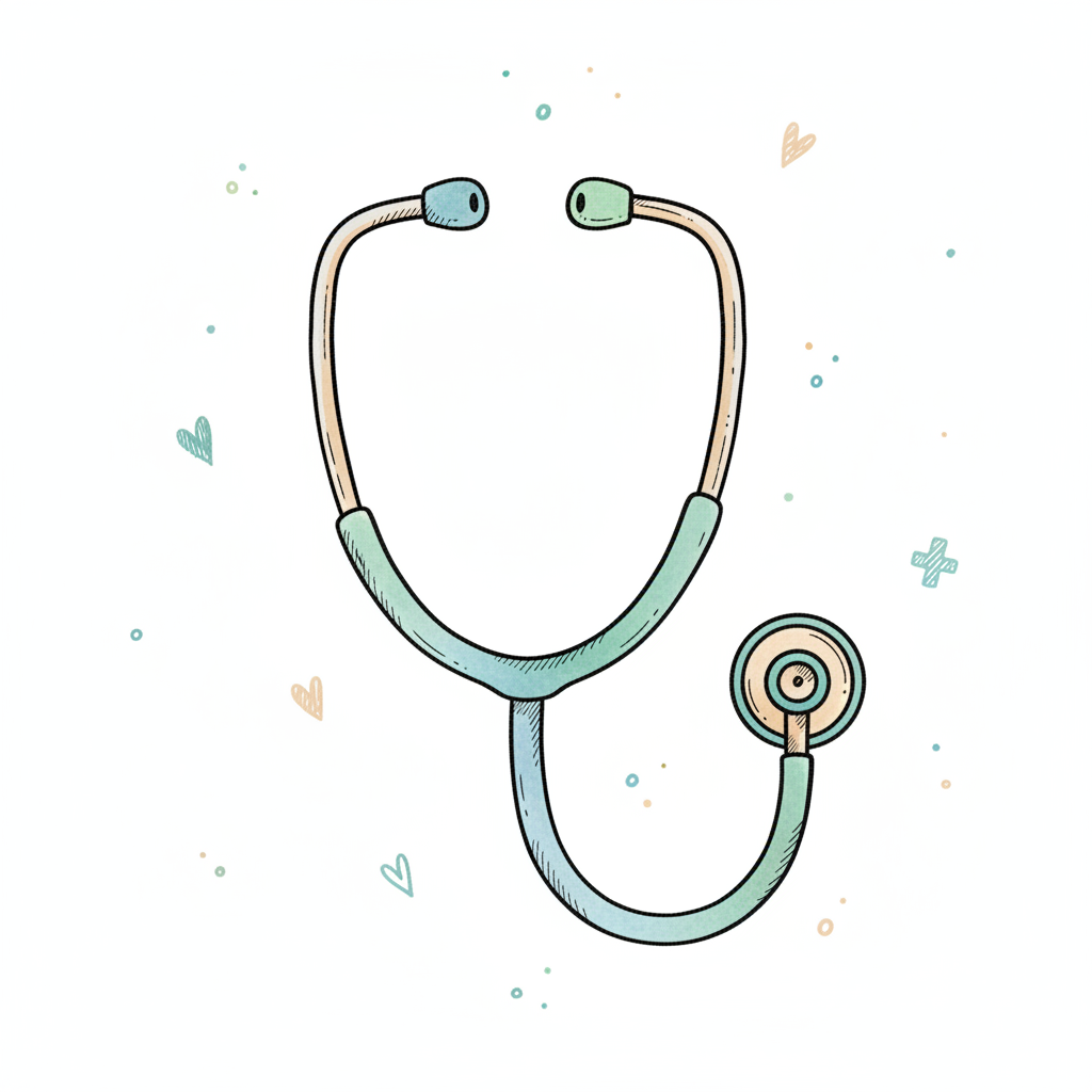 Illustration eines Stethoskops mit bunten Akzenten.