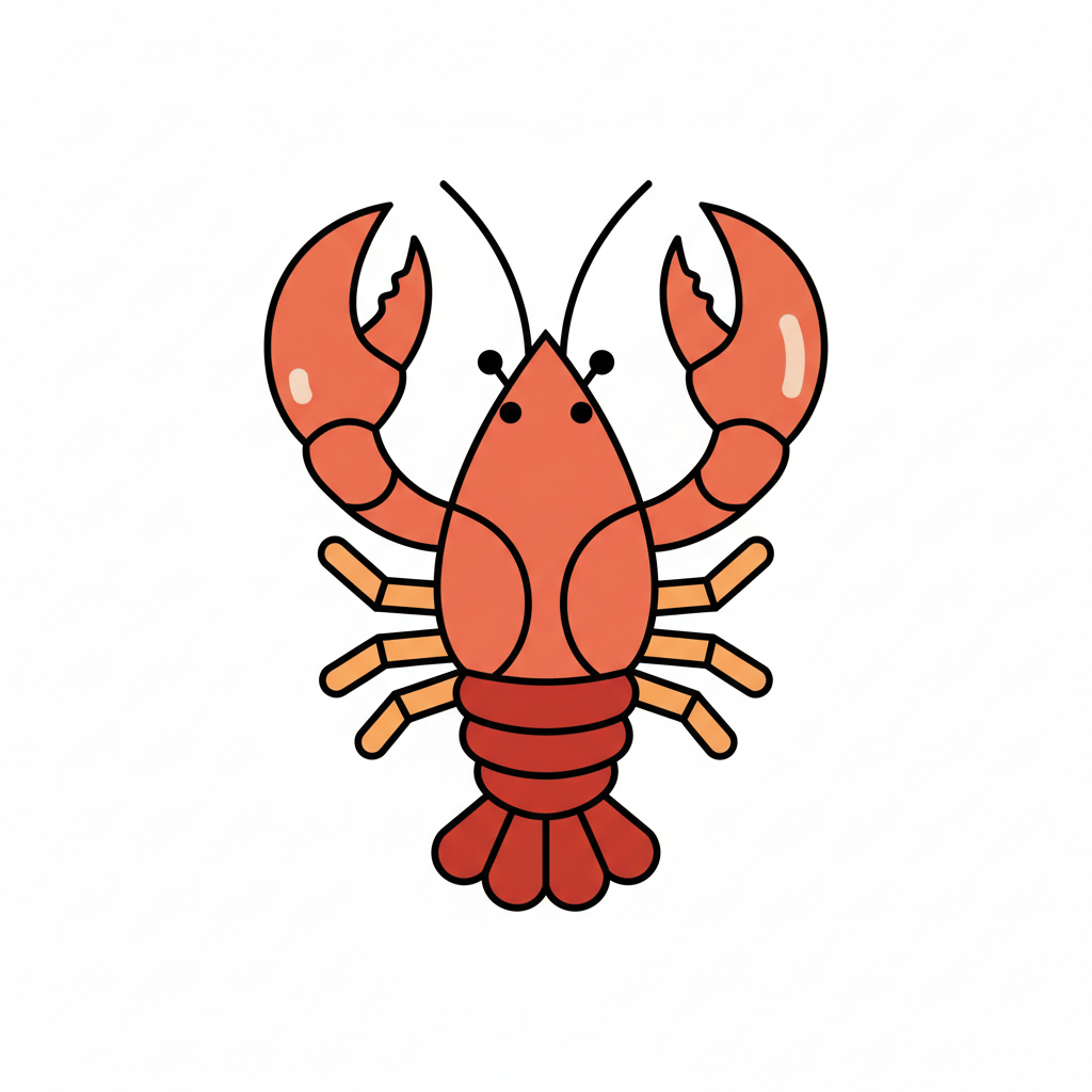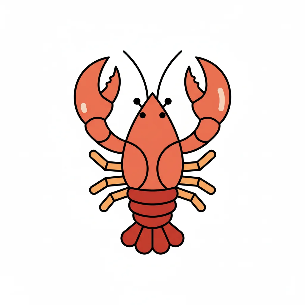 Bunte, stilisierte Zeichnung eines Hummers auf weißem Hintergrund.