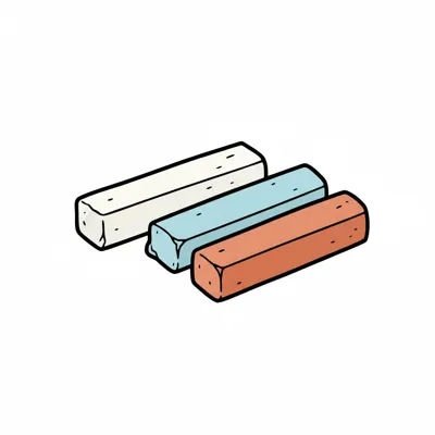Drei rechteckige Farbstifte in verschiedenen Farben.