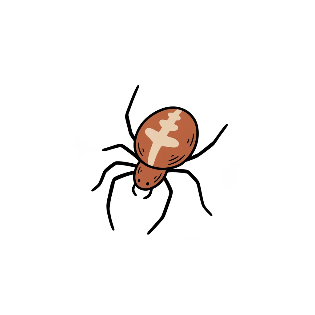 Eine stilisierte Zeichnung einer Spinne mit einem Kreuz auf dem Rücken.