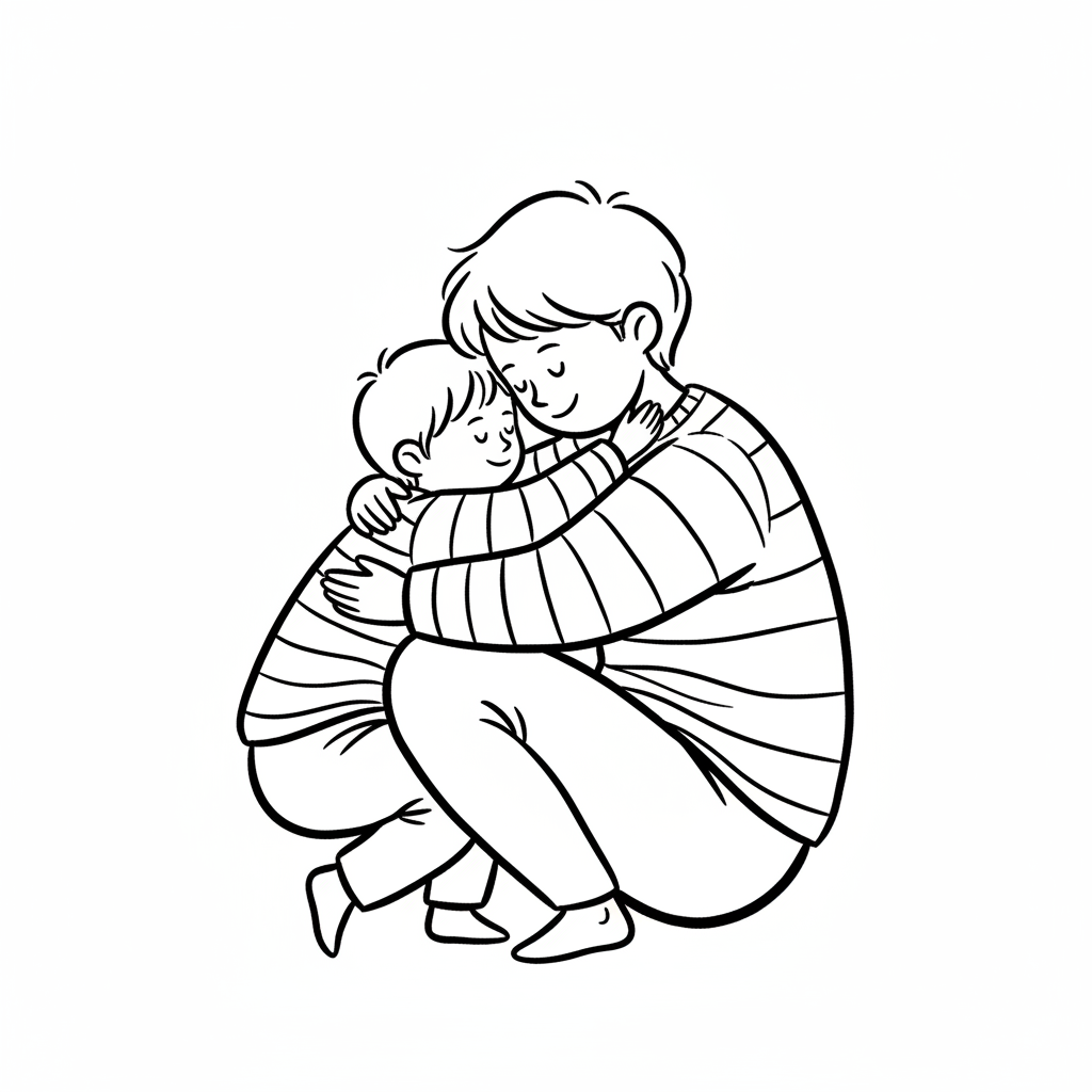 Eine liebevolle Umarmung zwischen einem Kind und einem Erwachsenen.