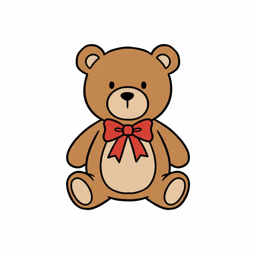 Kuscheliger, brauner Teddybär mit runden Ohren und freundlichem Gesicht.