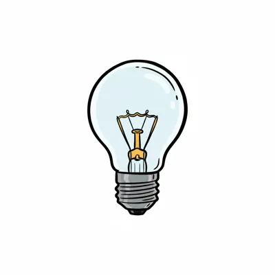 Eine gezeichnete Glühbirne mit sichtbarem Glühfaden auf weißem Hintergrund.