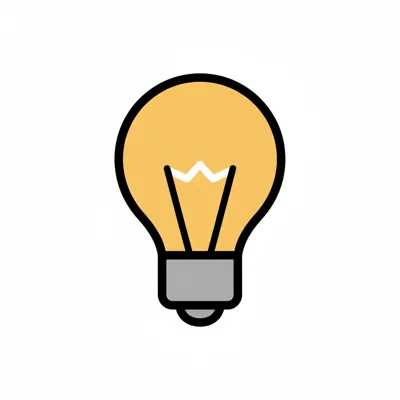 Stilisierte Glühbirne, leuchtend gelb, symbolisiert Idee oder Innovation.