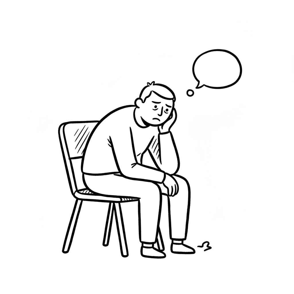 Eine traurige Person sitzt nachdenklich auf einem Stuhl.