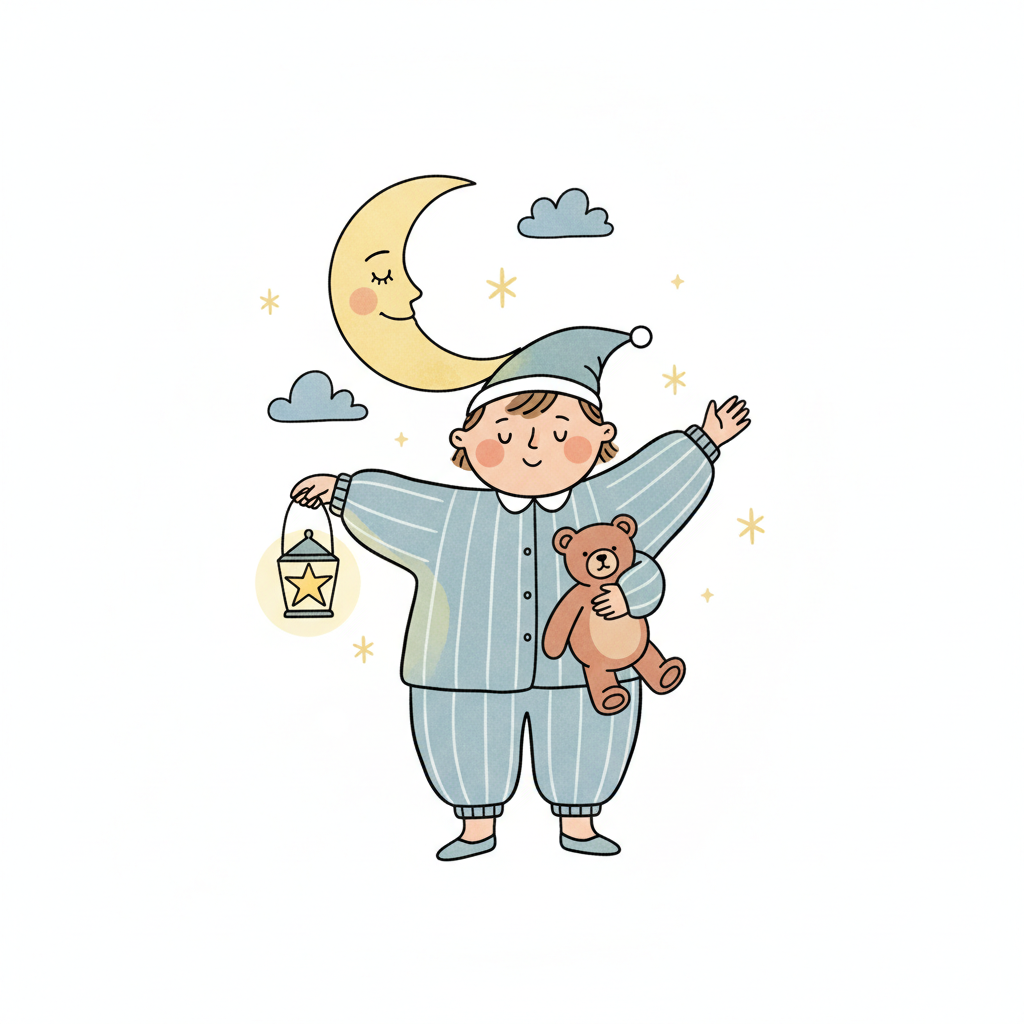 Handgezeichnete Kinderbuchillustration im modernen skandinavisch-nordischen Stil. Minimalistische, freundliche Figur mit einfachen Formen und leicht unregelmäßigen, handgezeichneten Linien. Ruhige, gedeckte Farbpalette, viel freie Fläche, reduzierte Details, sanfte Papier- oder Aquarellstruktur. Warme, ruhige, leicht humorvolle Stimmung, flächige Komposition ohne starke Perspektive, moderner nordischer Illustrationsstil, charmant und zeitlos.