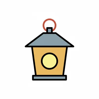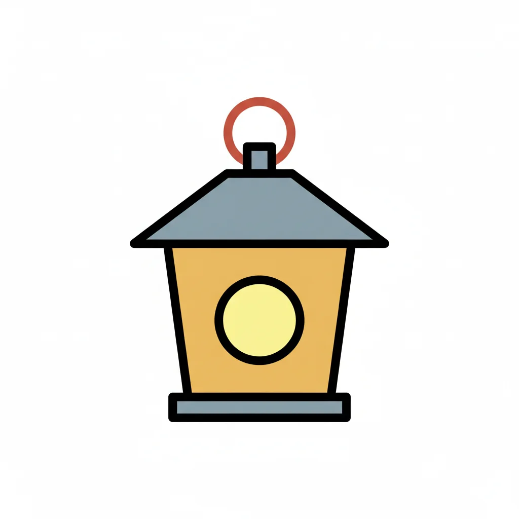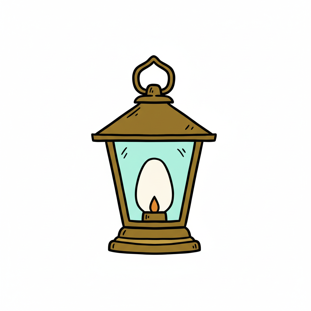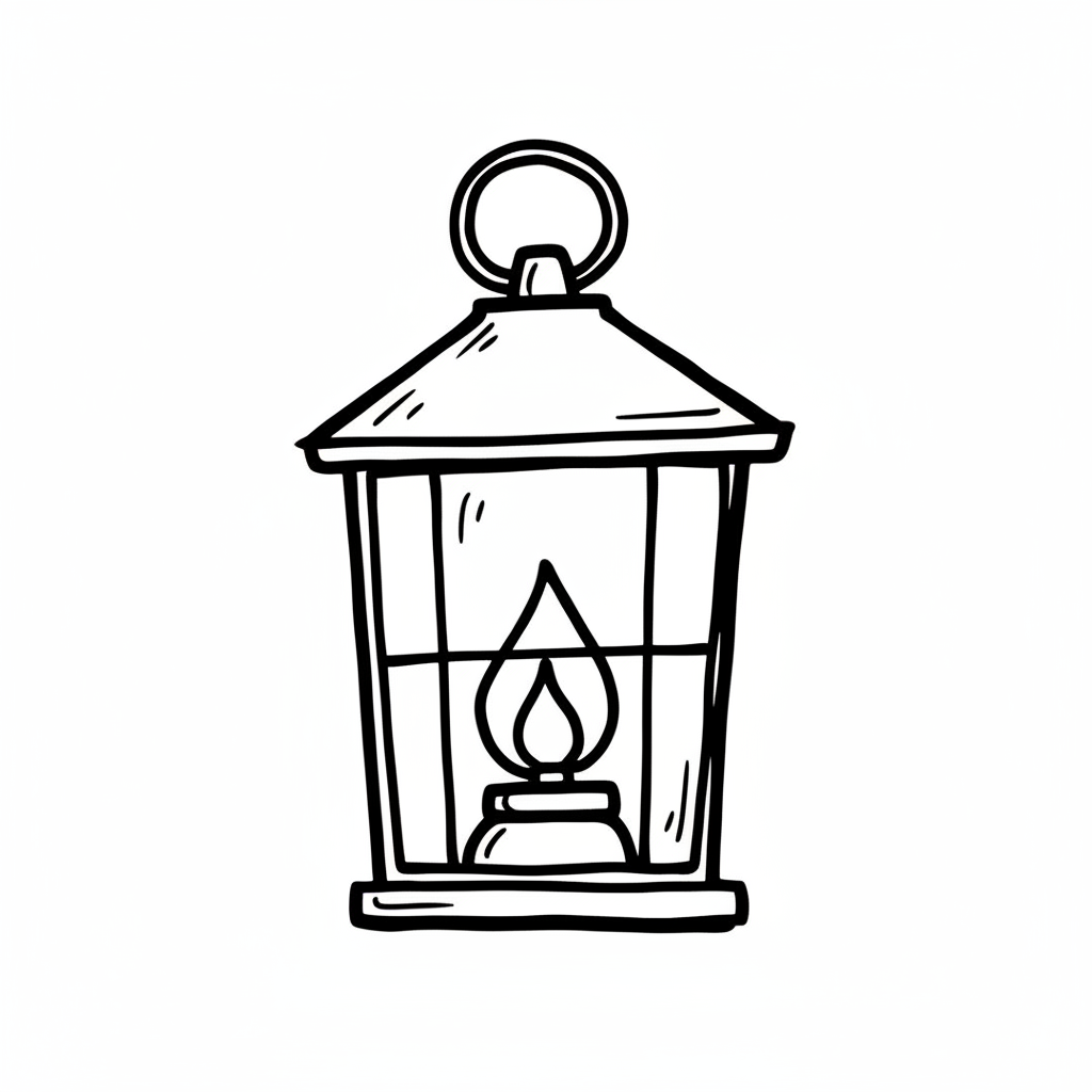 Eine skizzenhafte Laterne mit einer Flamme innen.