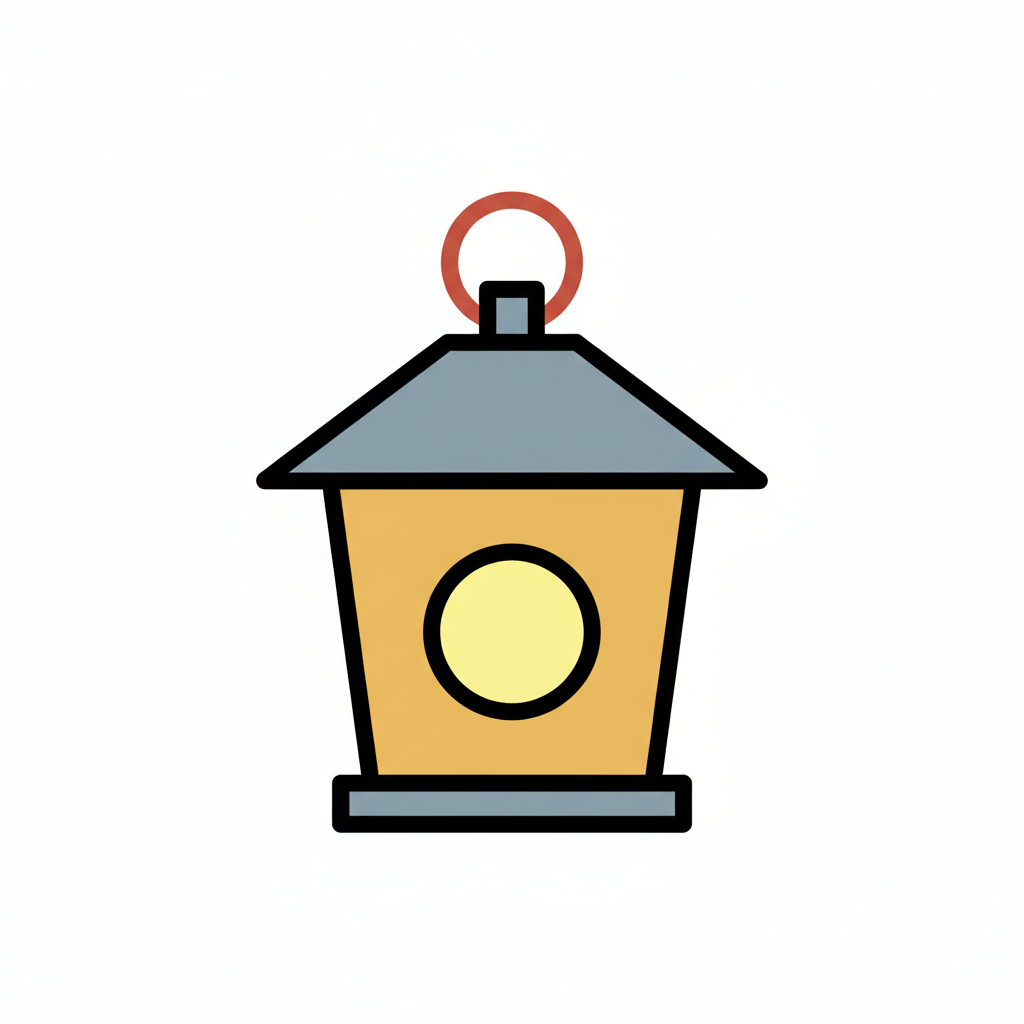 Eine stilisierte Laterne mit einer Flamme im Inneren.