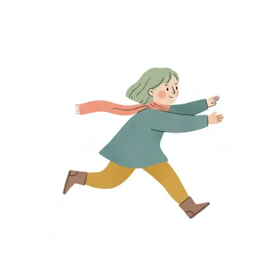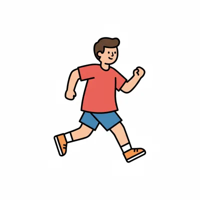 Ein stilisierter Junge läuft mit fröhlicher Miene.