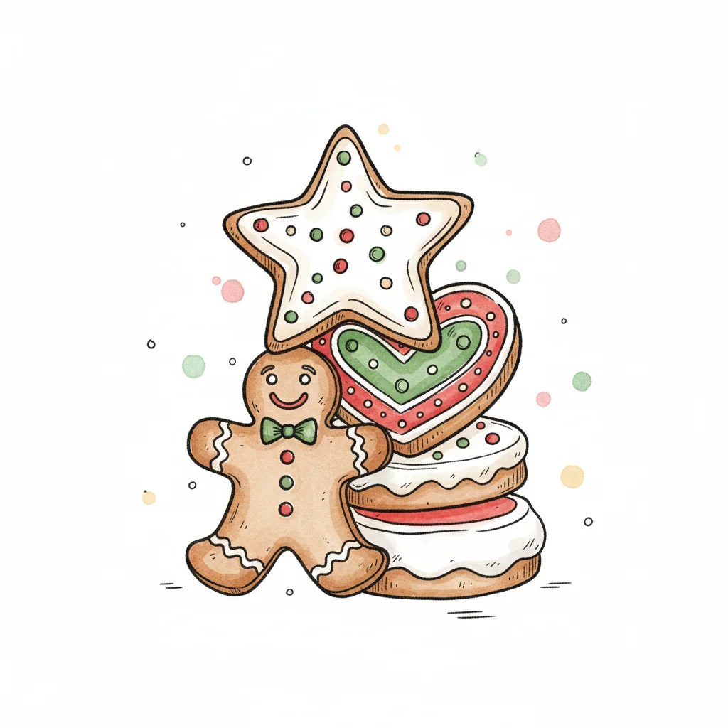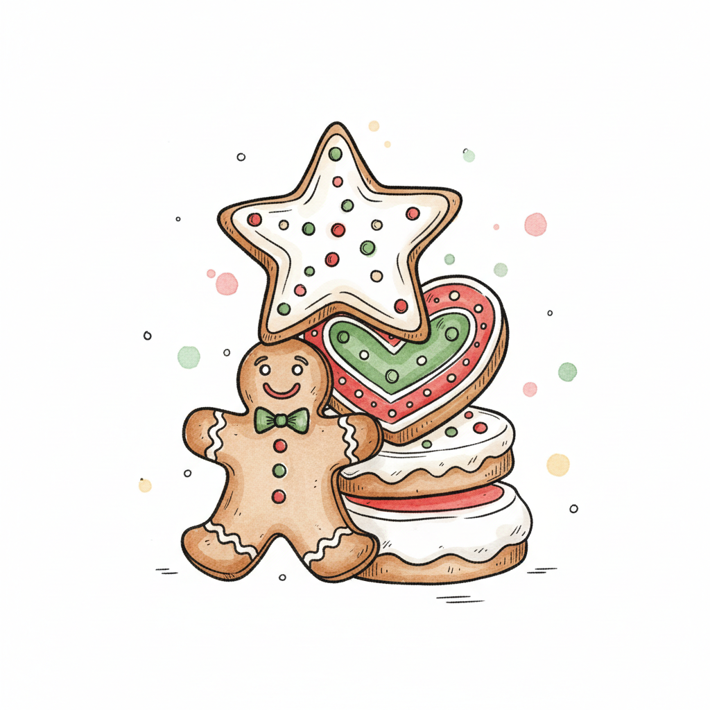 Ein Stapel von Weihnachtsplätzchen, inklusive Lebkuchenmann und Stern.