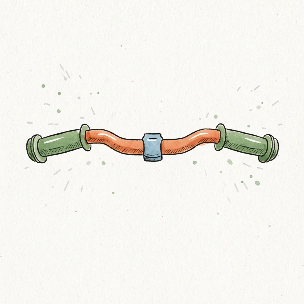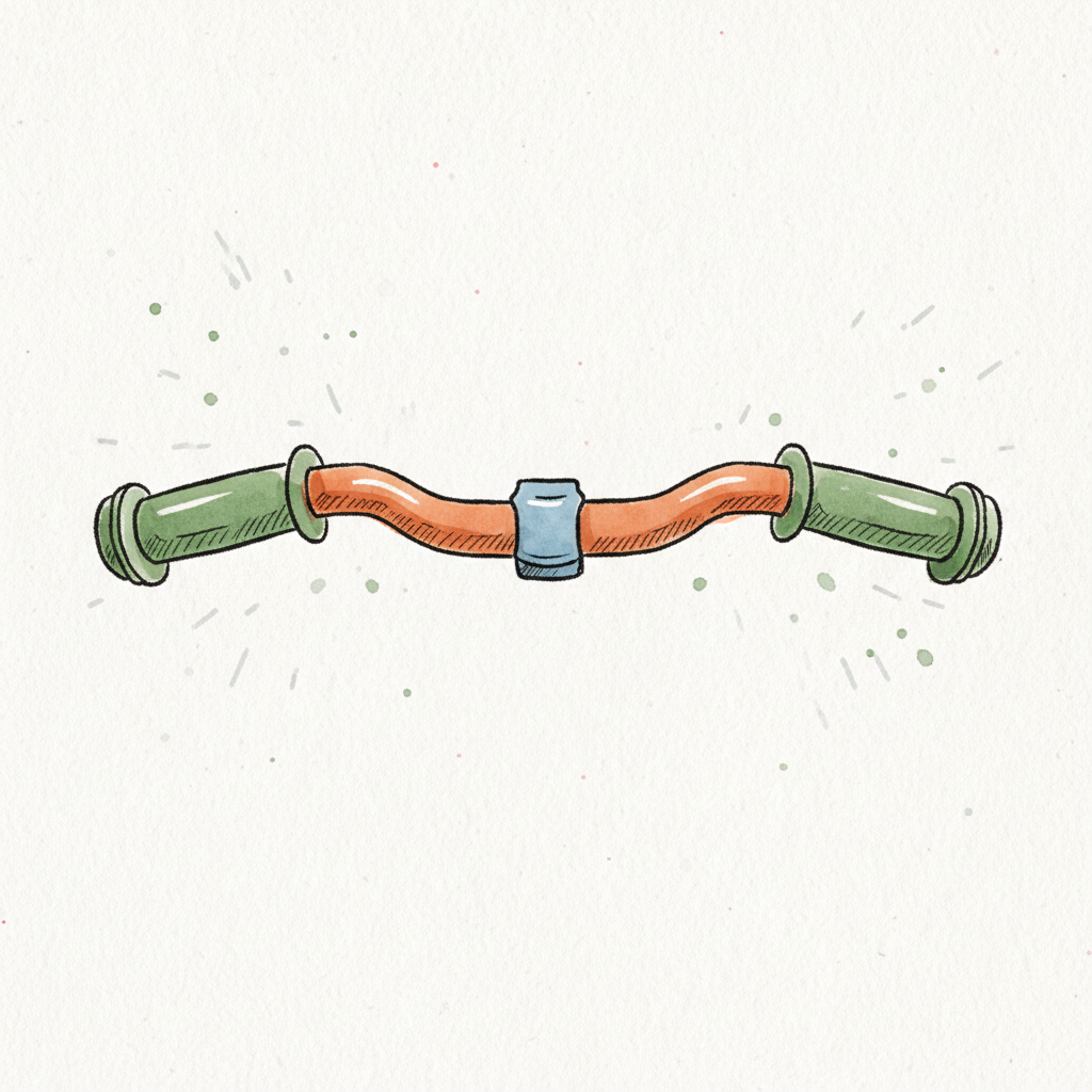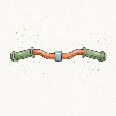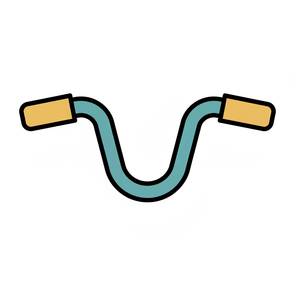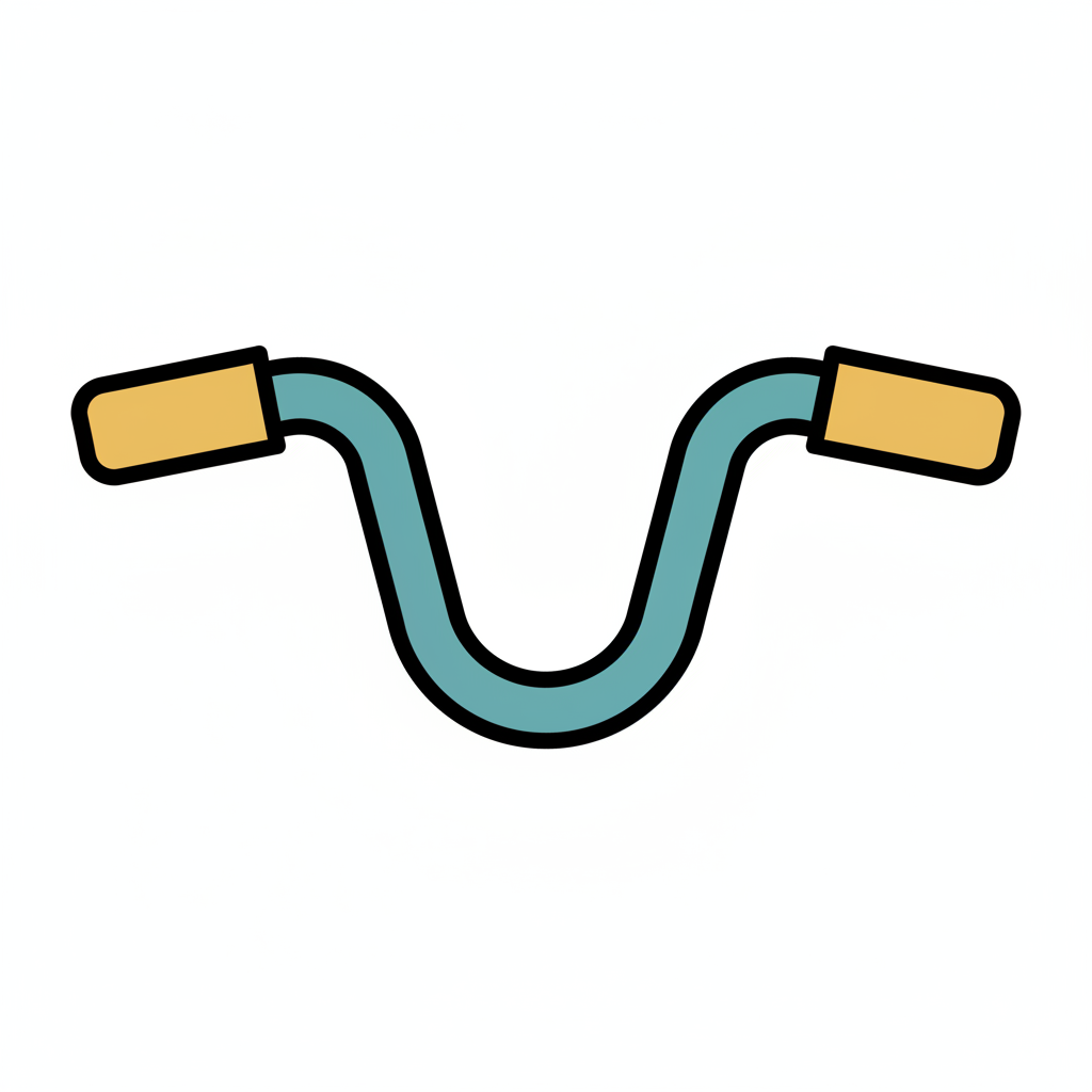 Gezeichneter Fahrradlenker in Orange und Grün mit blauer Klemme auf hellem Hintergrund.