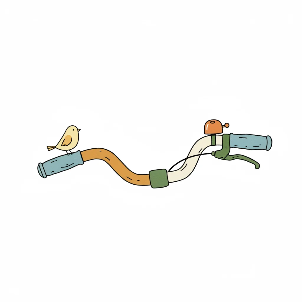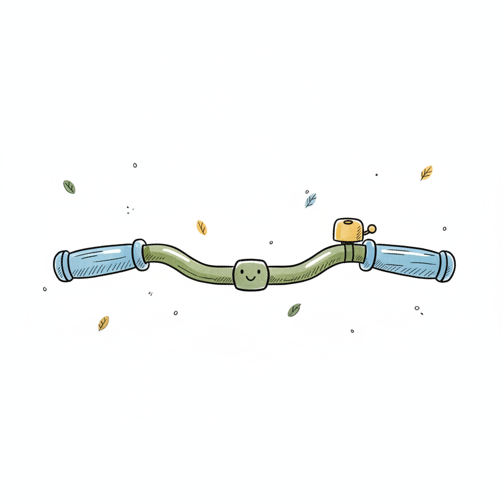 Illustration eines Fahrradlenkers mit braunen Griffen, Bremshebeln und einer blauen Klingel.