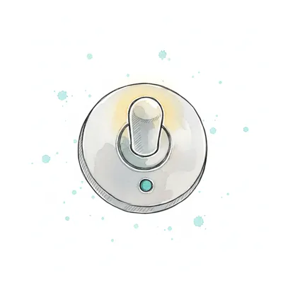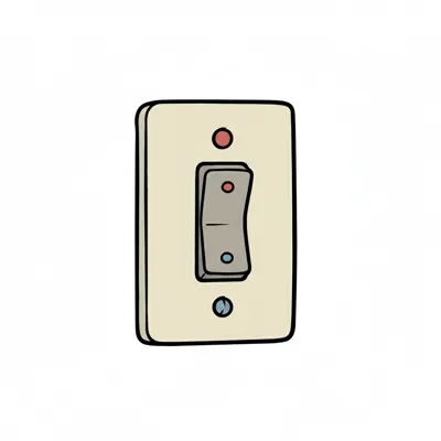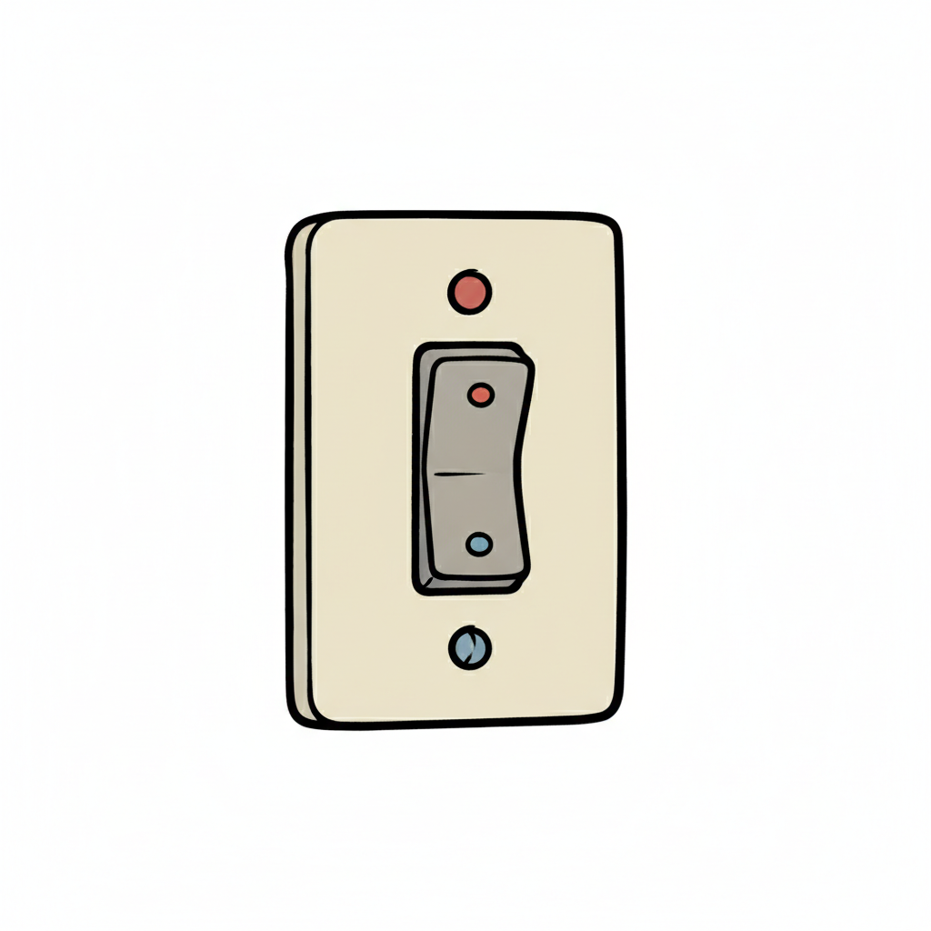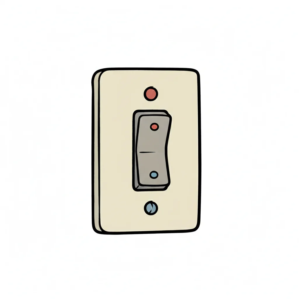 Cartoon-Lichtschalter in Aus-Position mit roten und blauen Punkten auf weißem Grund.