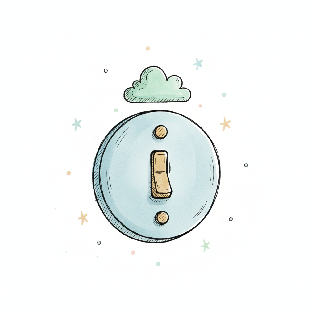 Niedliche Illustration eines runden Lichtschalters mit einem Schalter in der Mitte und einer Wolke darüber.