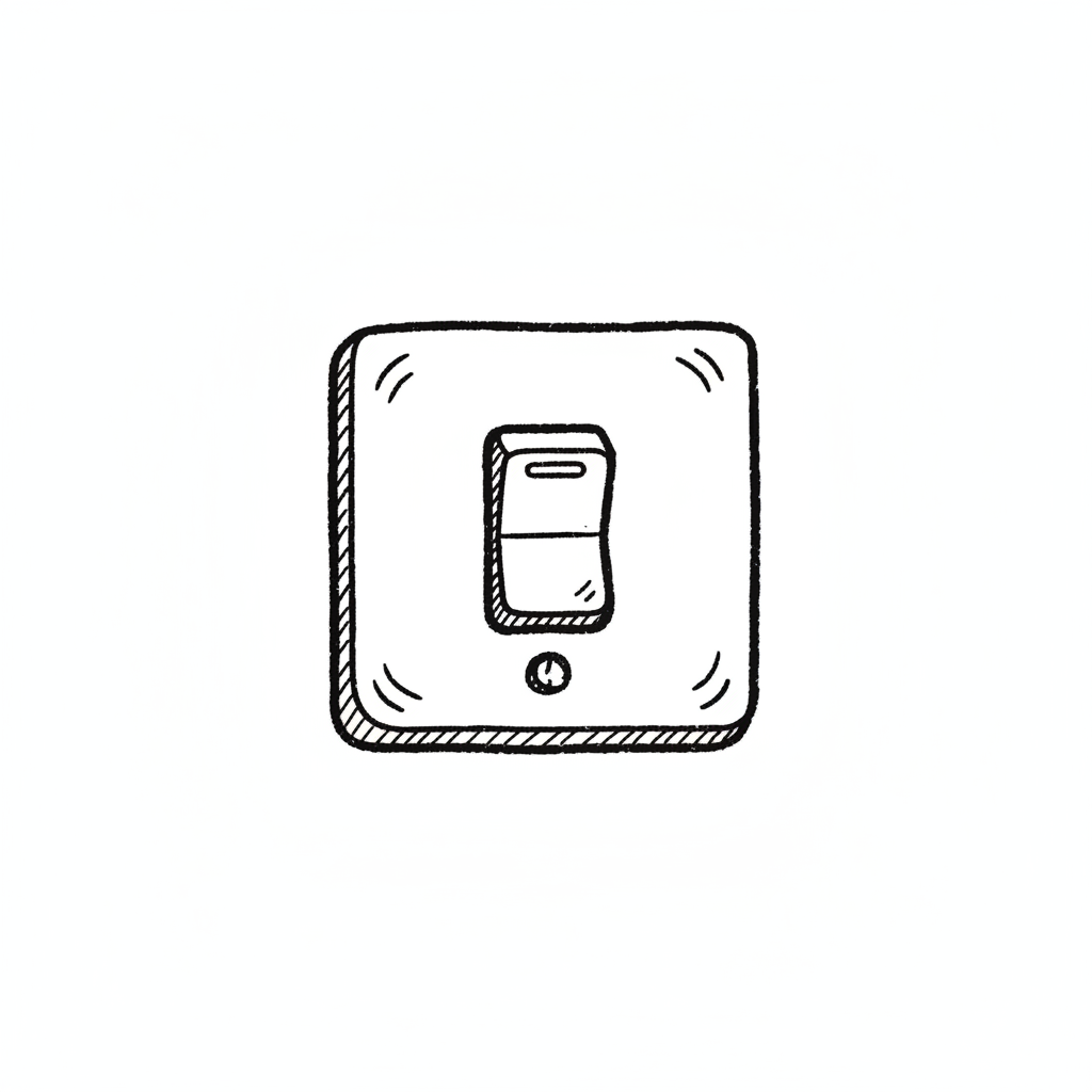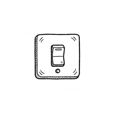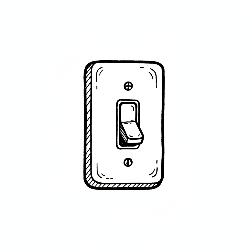 Schwarz-weiße Skizze eines Lichtschalters in der Aus-Position.