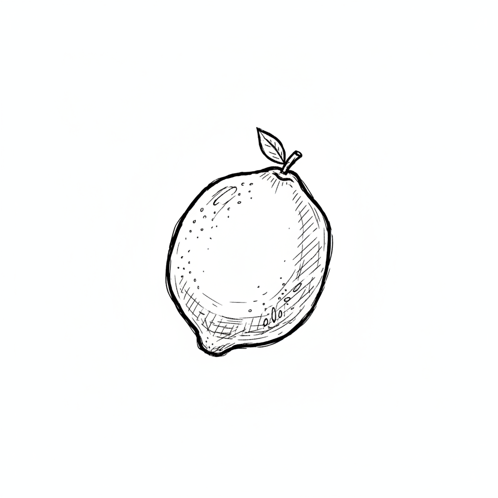 Eine handgezeichnete Zitrone mit Blatt.