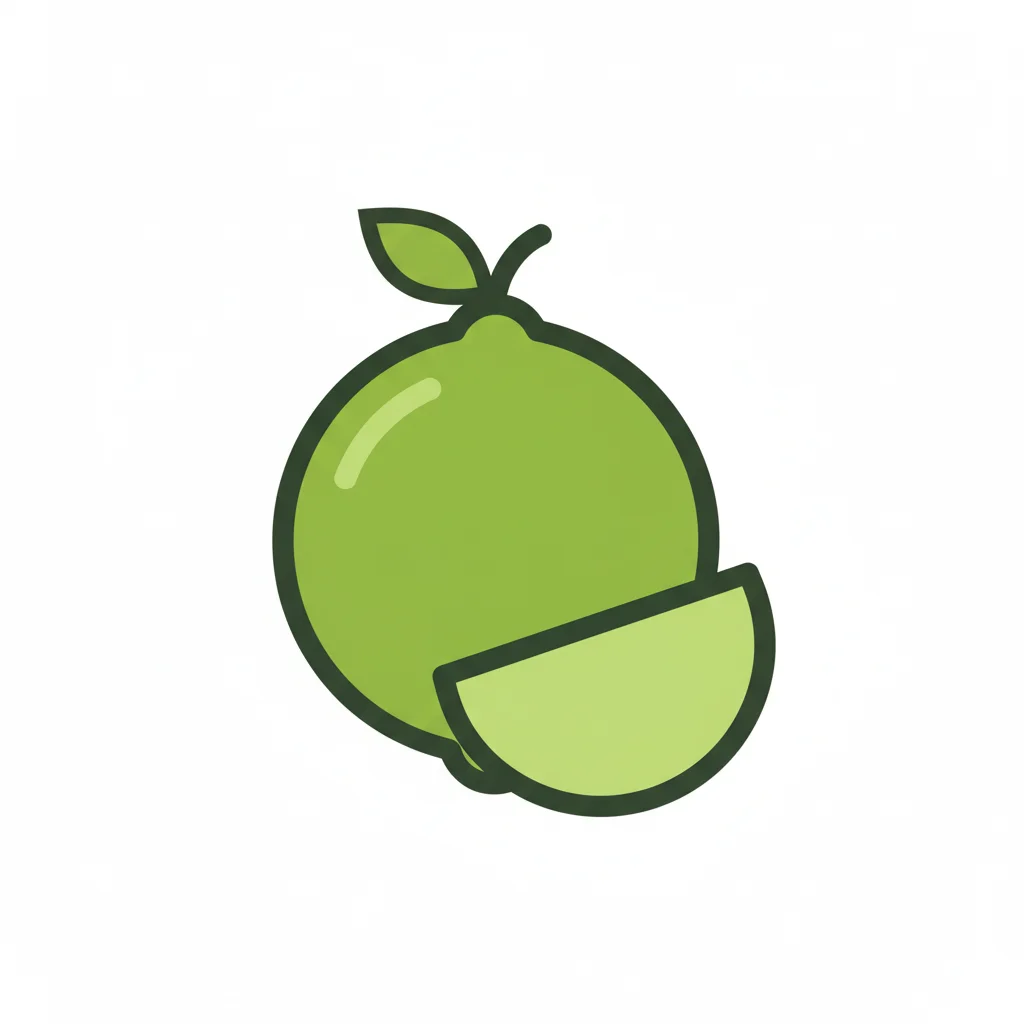 Ein einfach gezeichnete grüne Zitrone mit einem Blatt.