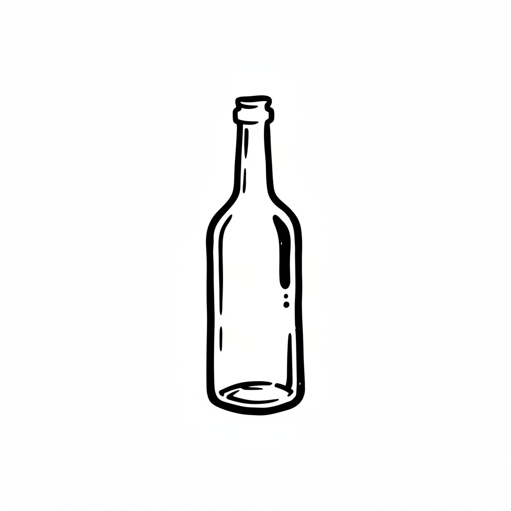 Grafische Darstellung einer leeren Flasche in Schwarz-Weiß.