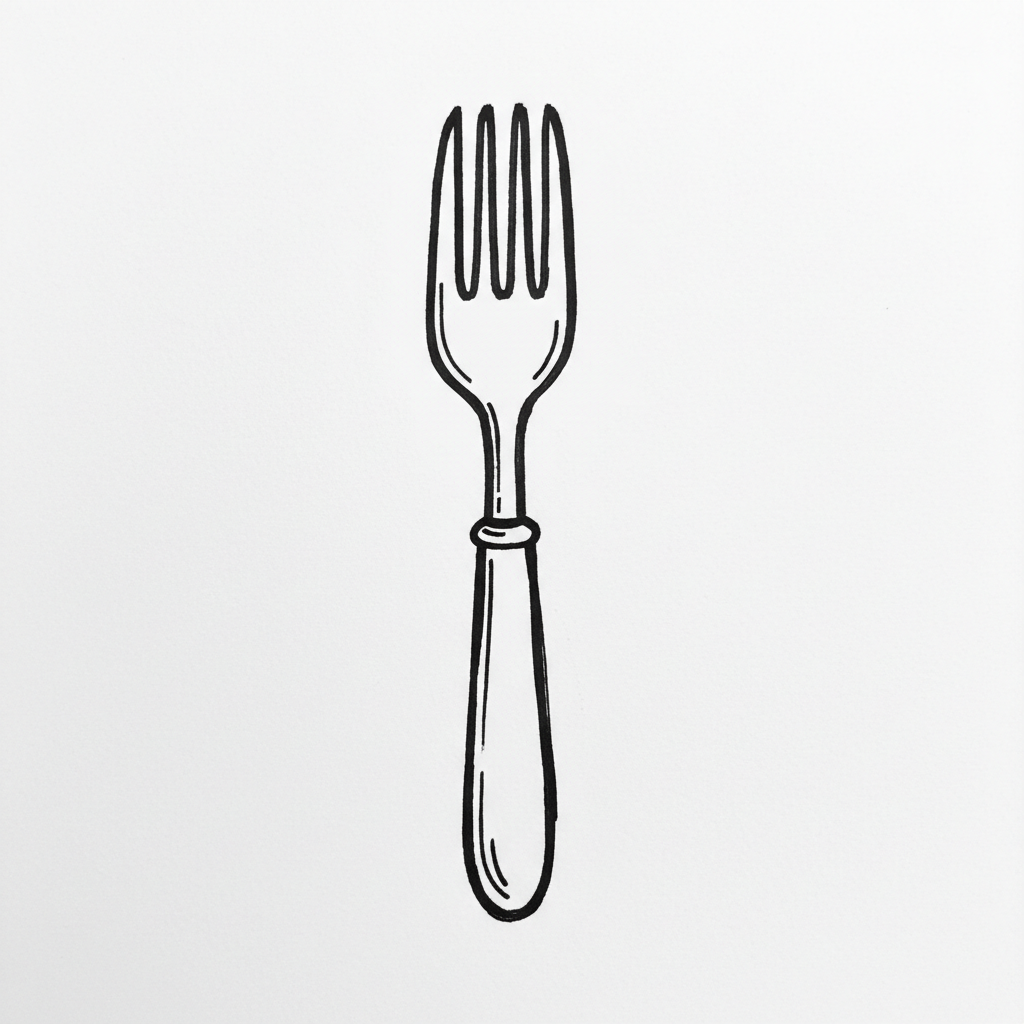 Ein einfaches, skizzenhaftes Bild einer Gabel.