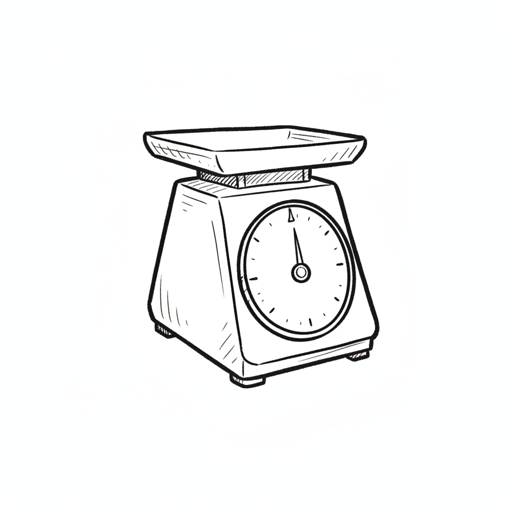 Eine einfache, klassische Waage mit einer runden Anzeige.