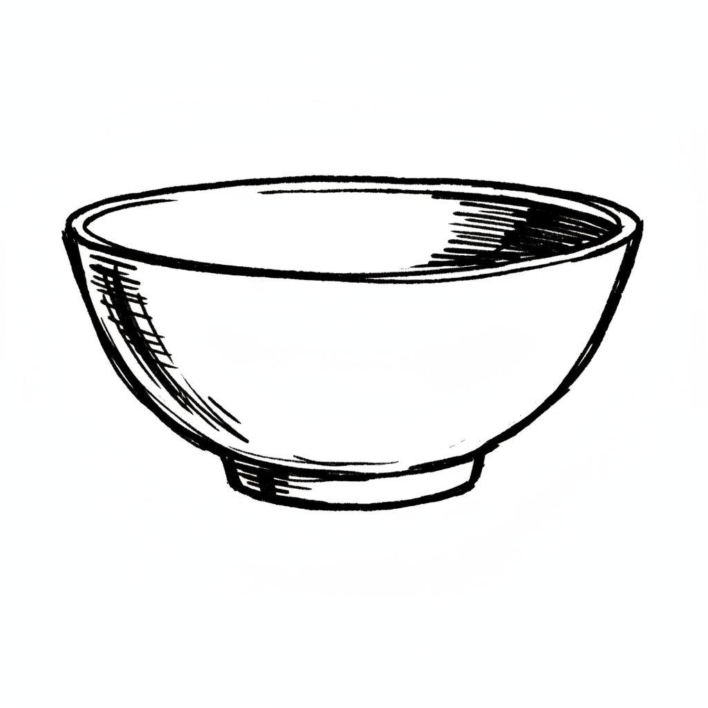 Eine einfache, skizzierte Schüssel mit rundem Rand.