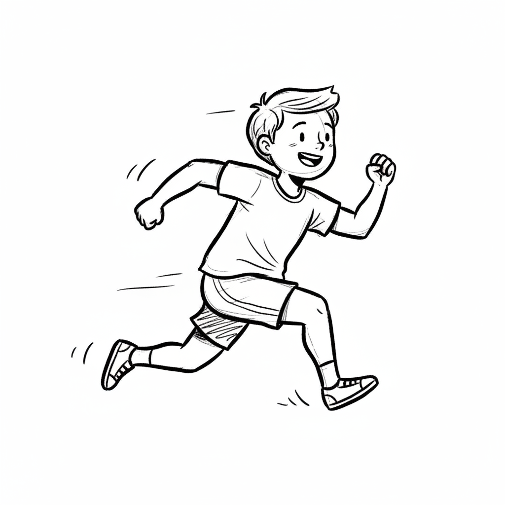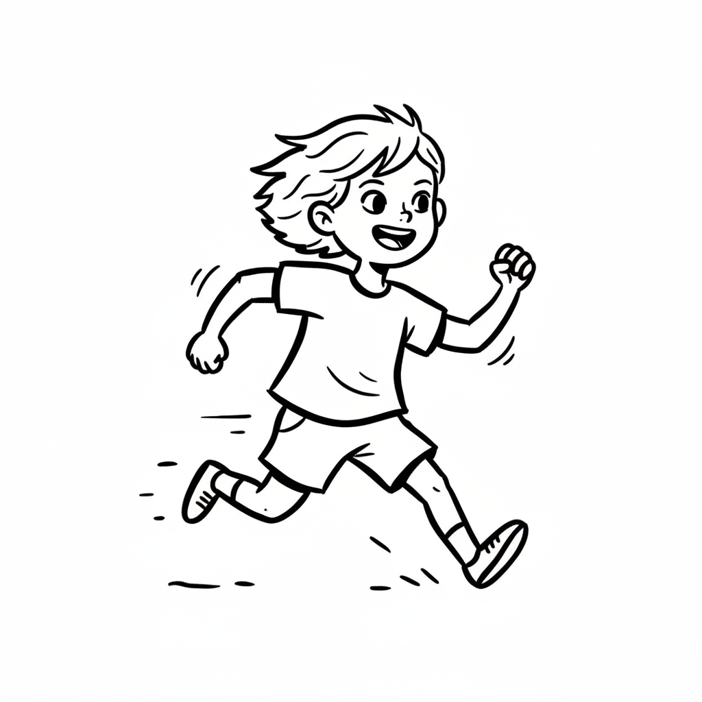 Ein Cartoon-Junge läuft fröhlich mit einem Lächeln.