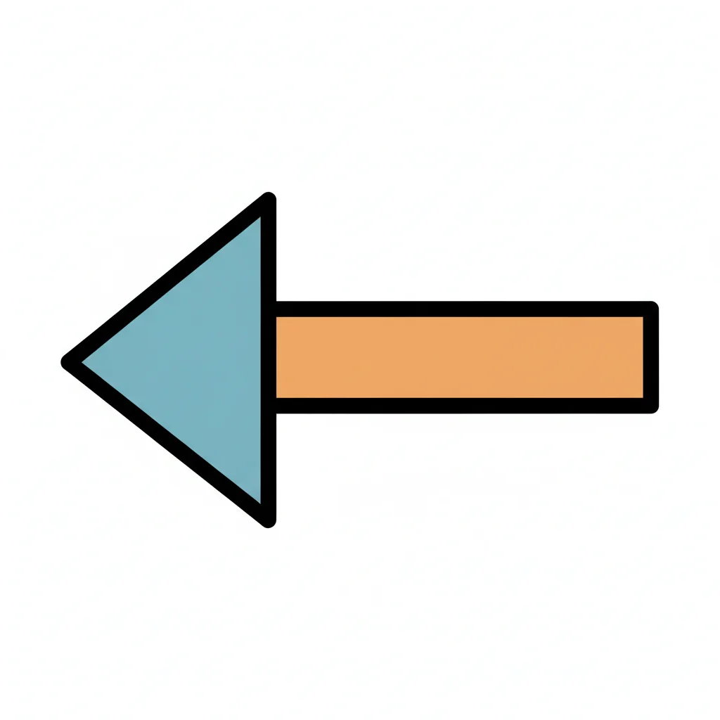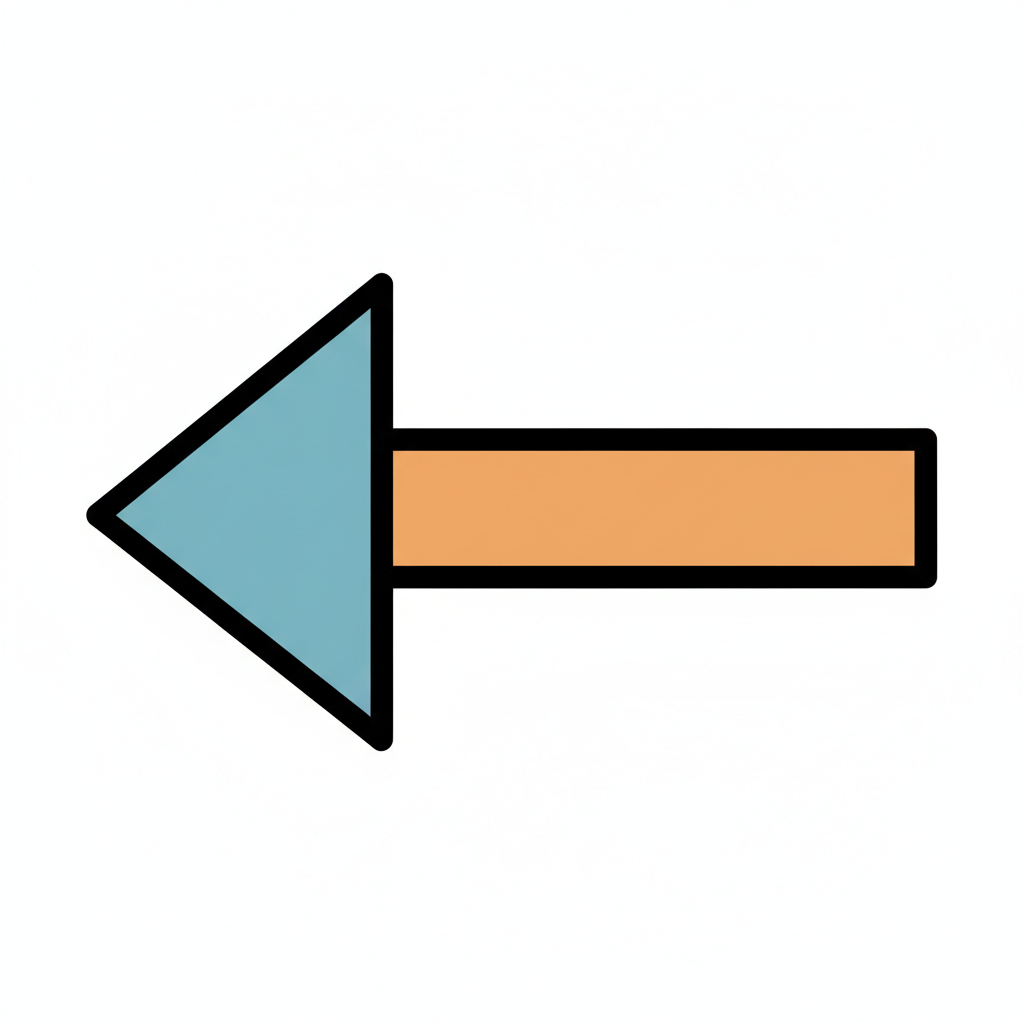 Stilisierter Pfeil, der nach links zeigt, mit blauem Kopf und orangefarbenem Schaft auf weißem Grund.