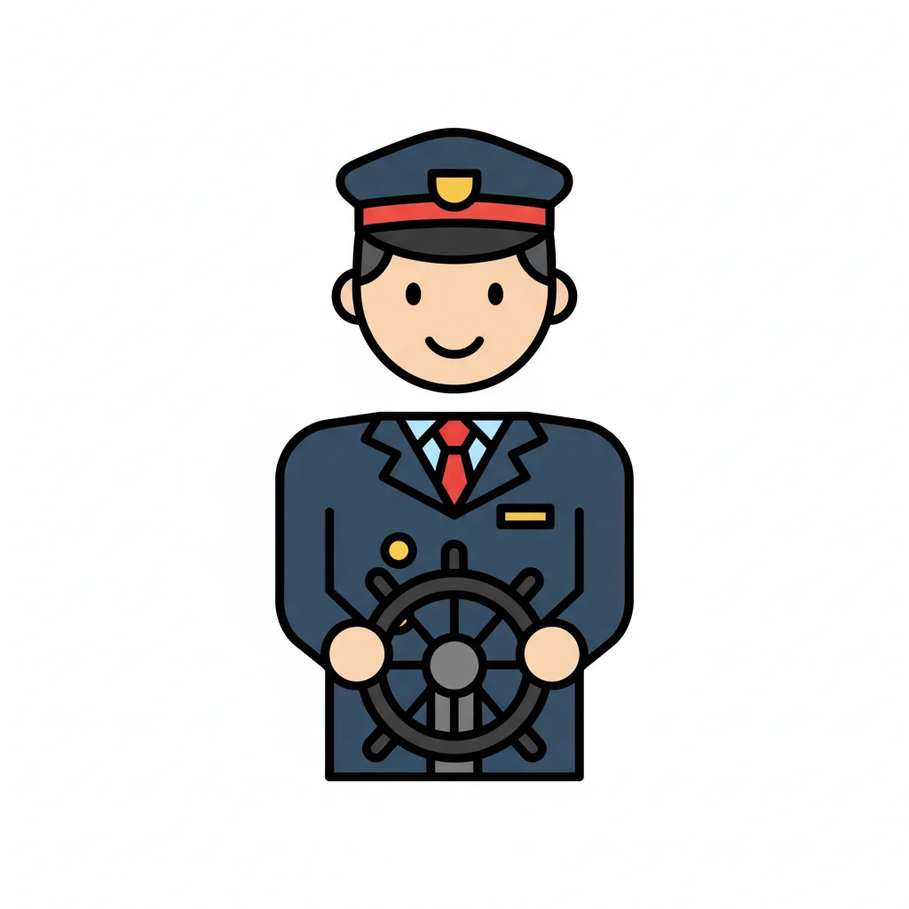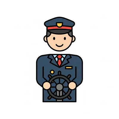 Ein lächelnder Kapitän hält ein Steuerrad in uniform.