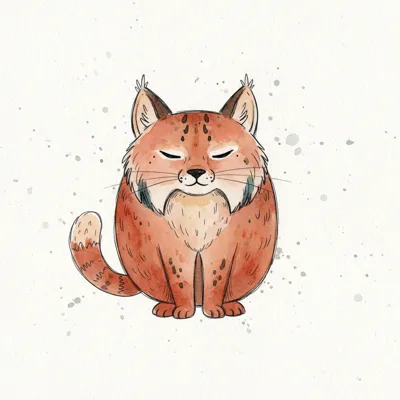 Niedliche Aquarell-Illustration eines sitzenden Luchses mit geschlossenen Augen.
