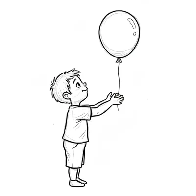 Ein Junge hält einen Ballon und schaut neugierig danach.