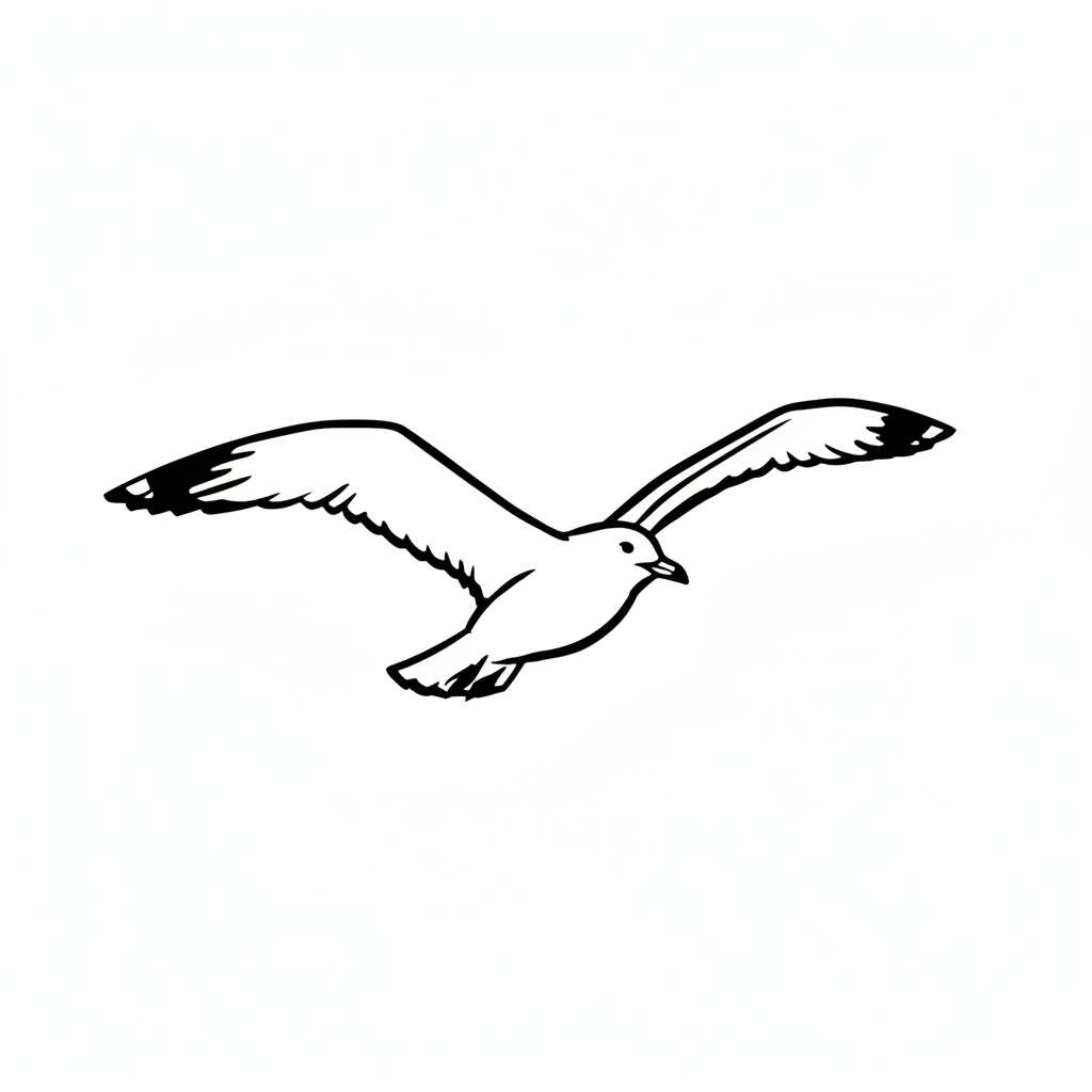Ein gezeichneter Vogel mit ausgebreiteten Flügeln im Flug.