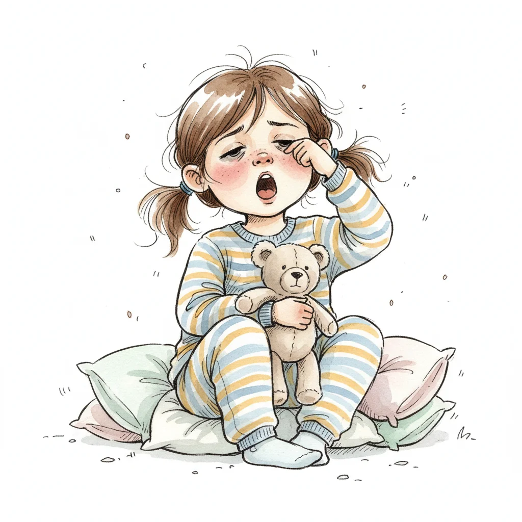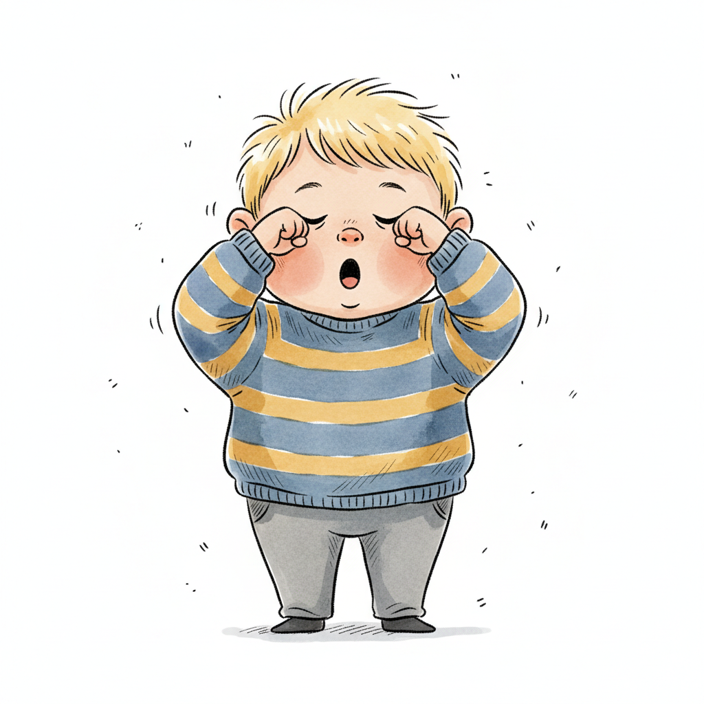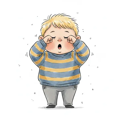 Ein müder Cartoon-Junge reibt sich die Augen und gähnt.