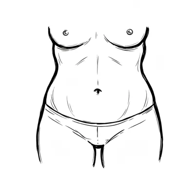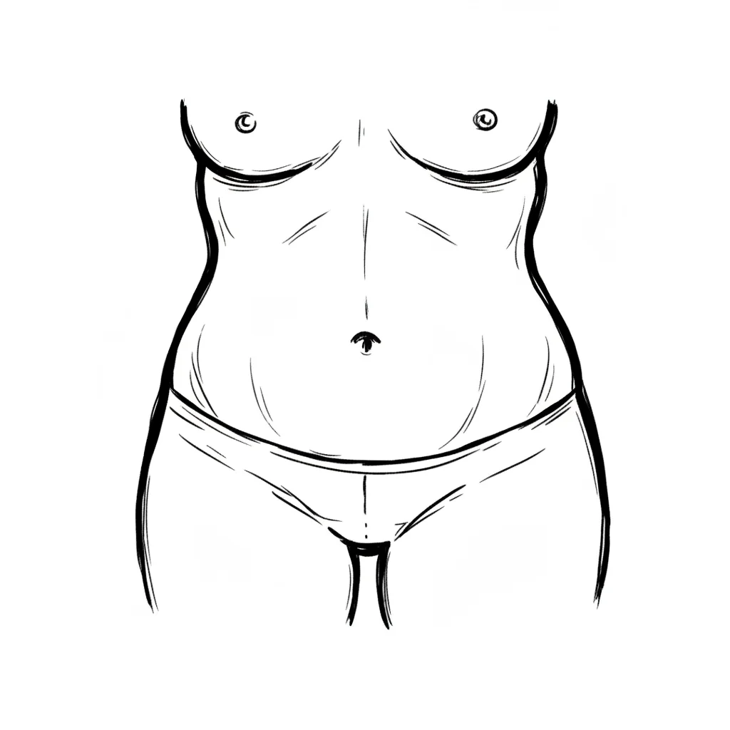 Skizze eines menschlichen Torso mit weiblichen Merkmalen.